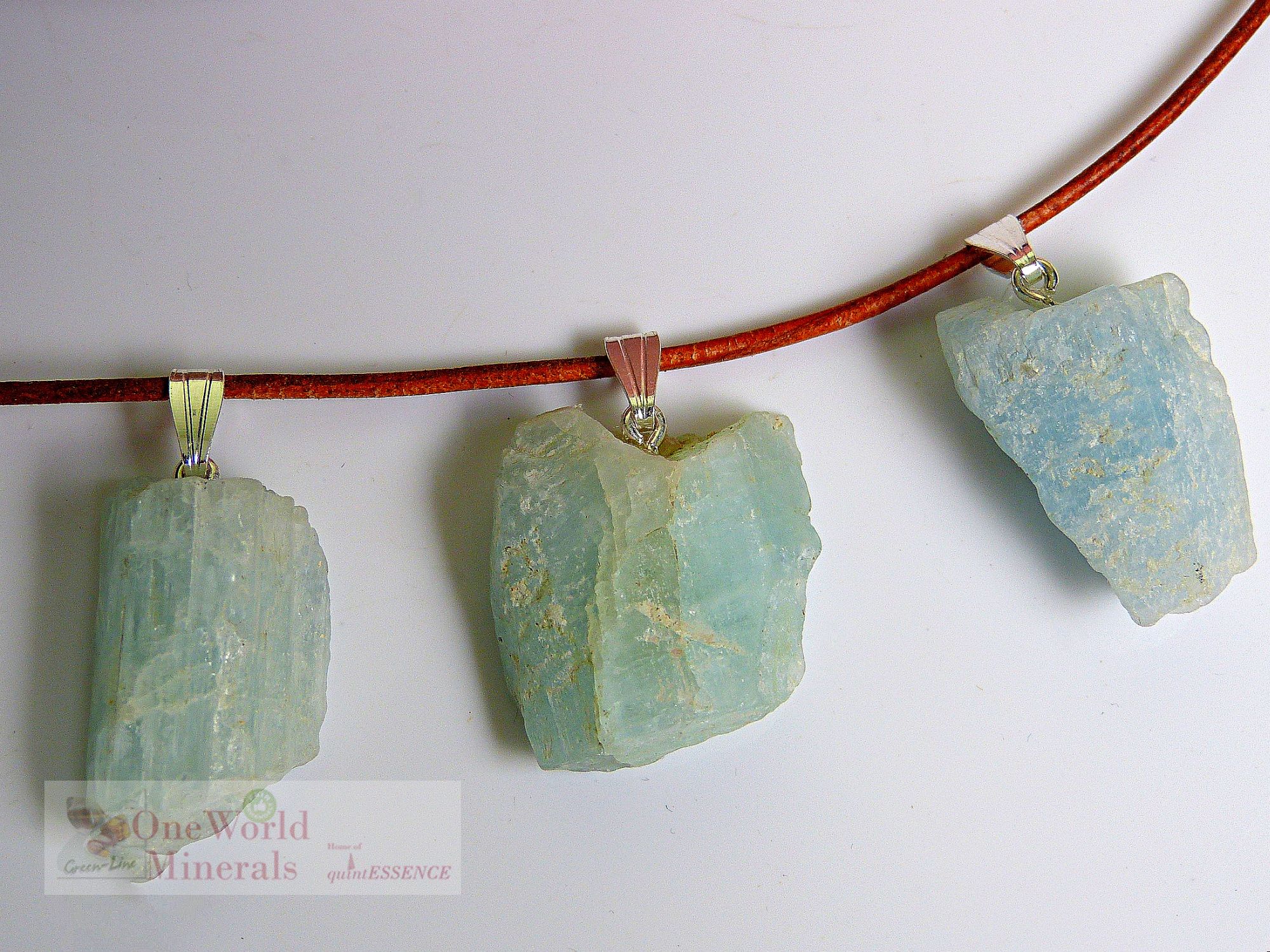 Natürliche Aquamarin Bruchstücke, entgratet und mit Silberöse zu Schmuckanhängern verarbeitet. Made in Germany.