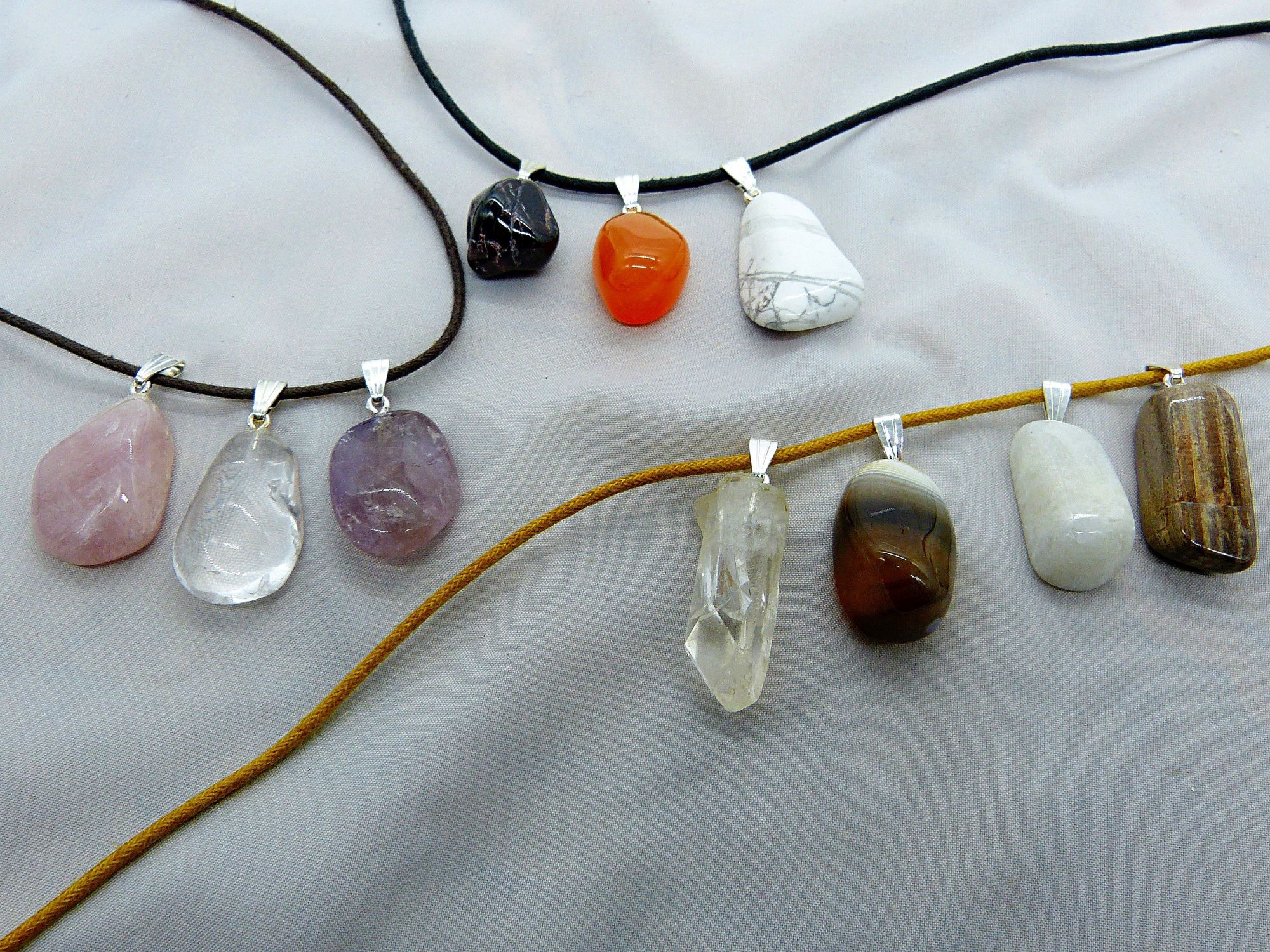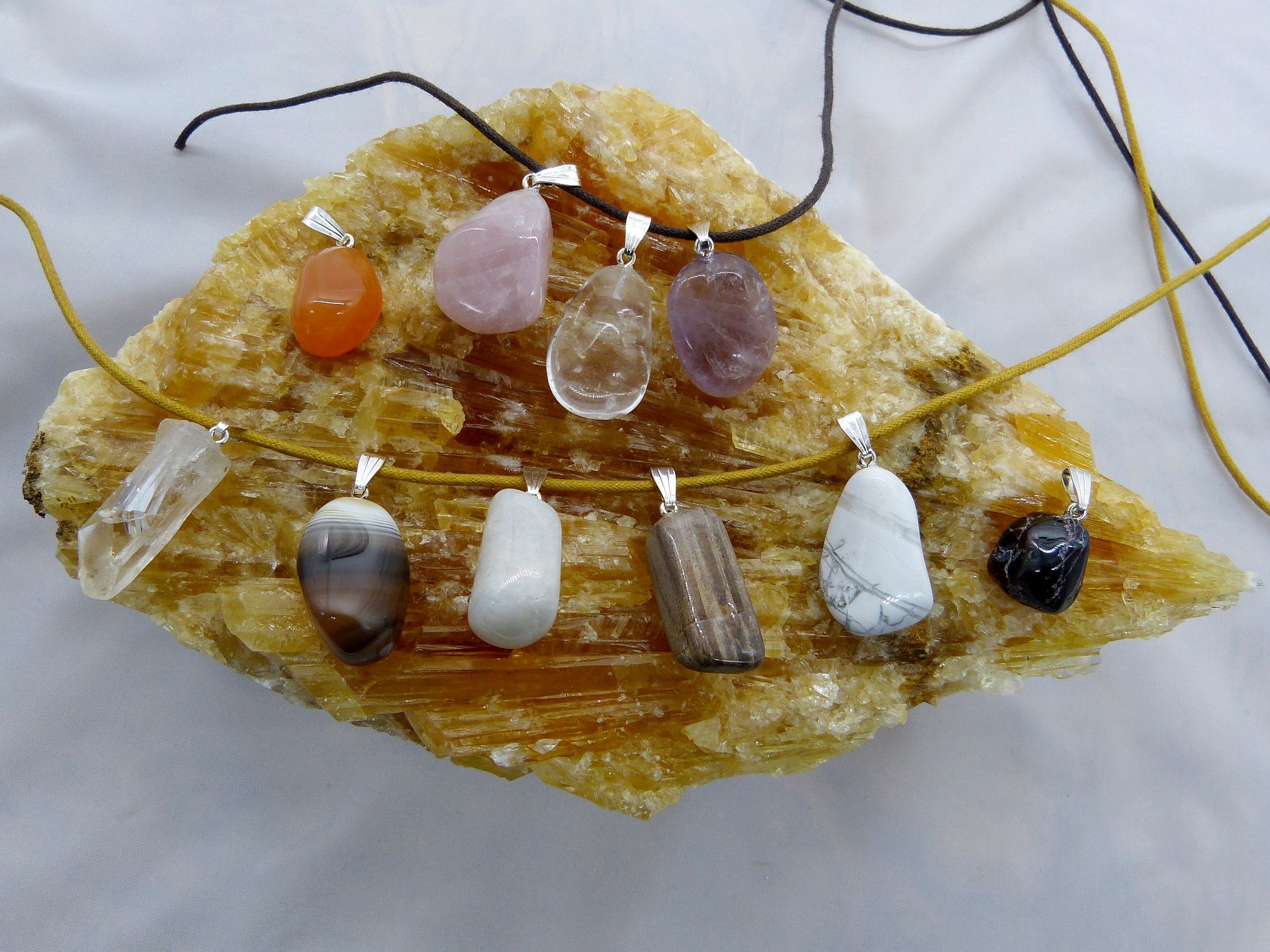 10 Edelstein Schmuckanhänger mit 925er Silberöse, im Bundle.