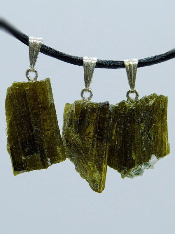 Epidot Kristall aus dem Himalaya, mit Silberöse, 3 Stück