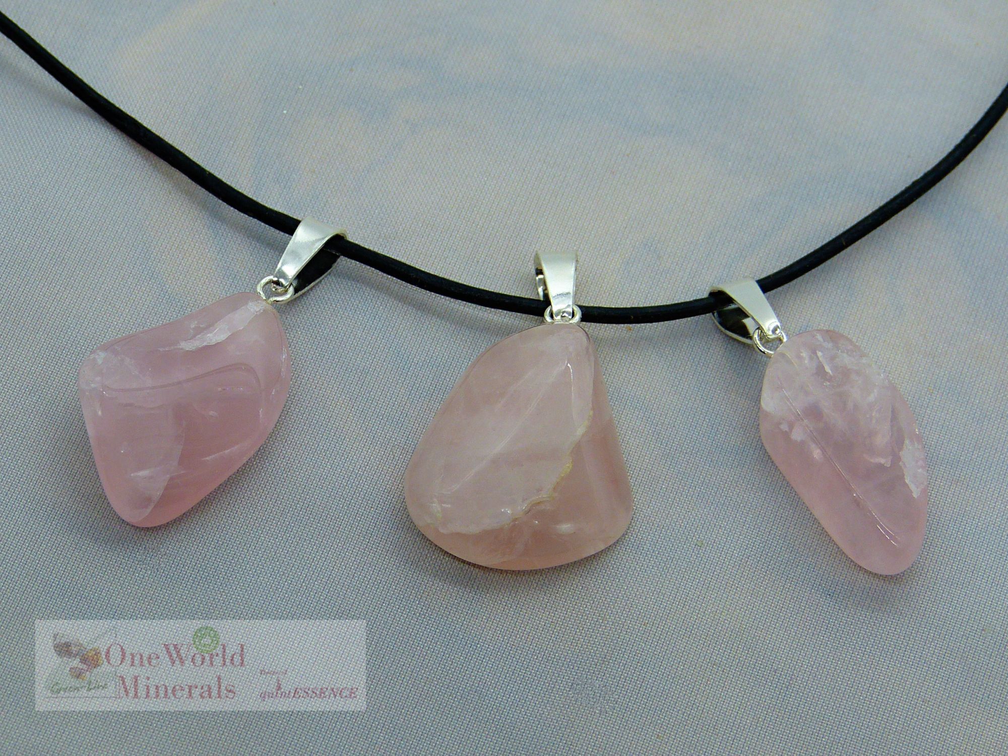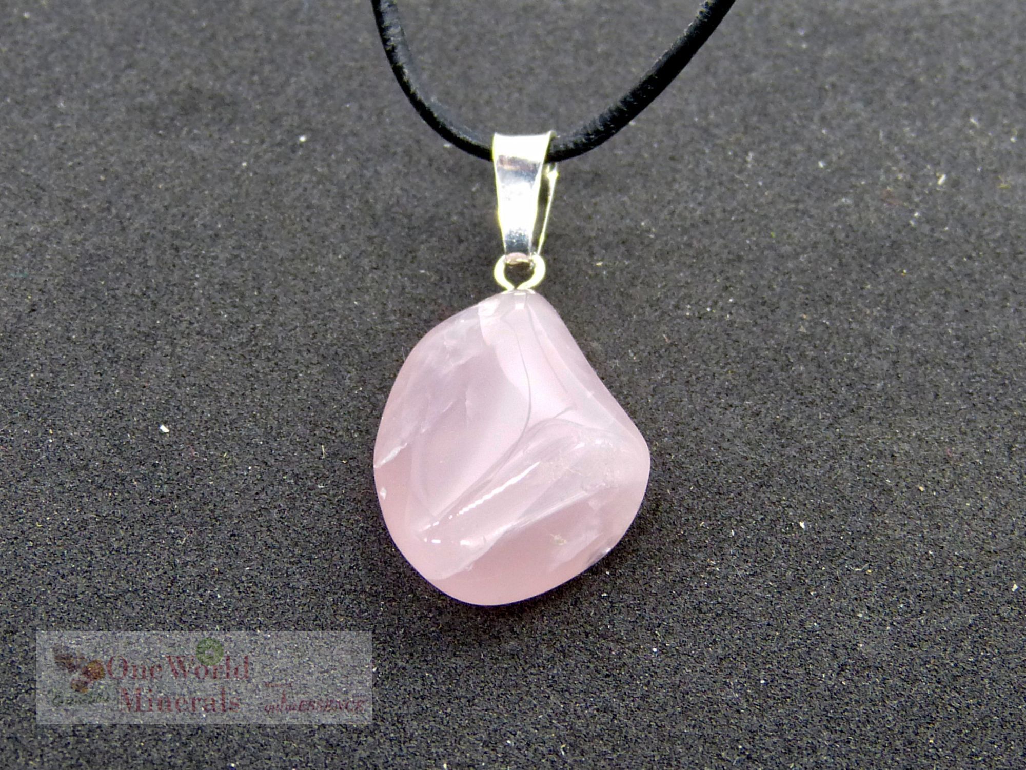 Rosenquarz mit Silberöse aus Madagskar. Hergestellt in unserer Werkstatt in Deutschland.
