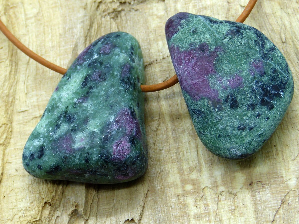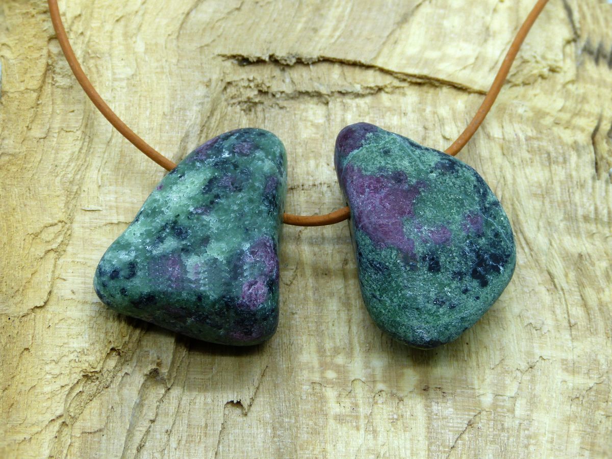 Rubin in Zoisit, Tansania, gebohrt, 2 Stück