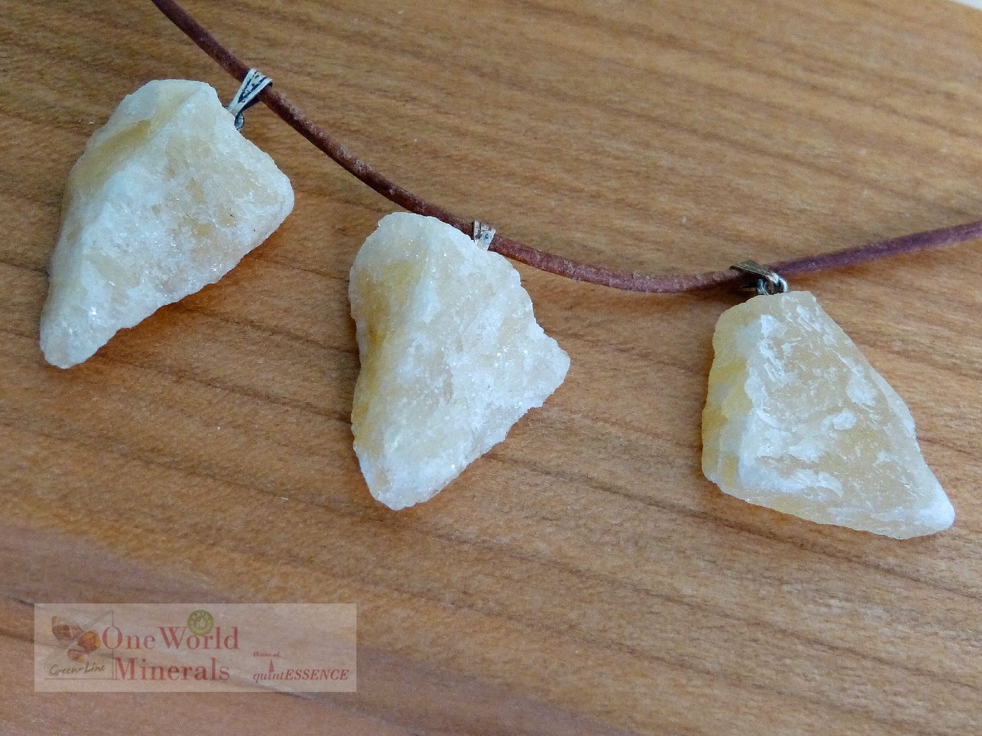 3 rohbelassene Calcit Schmuckanhänger, mit Silberöse - Einzelstücke
