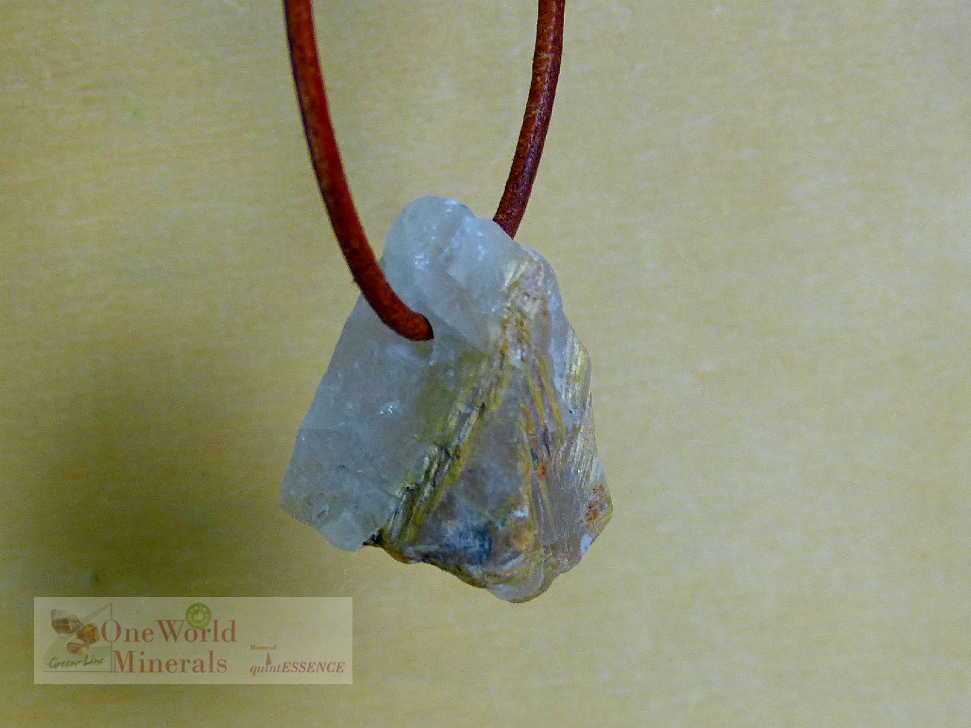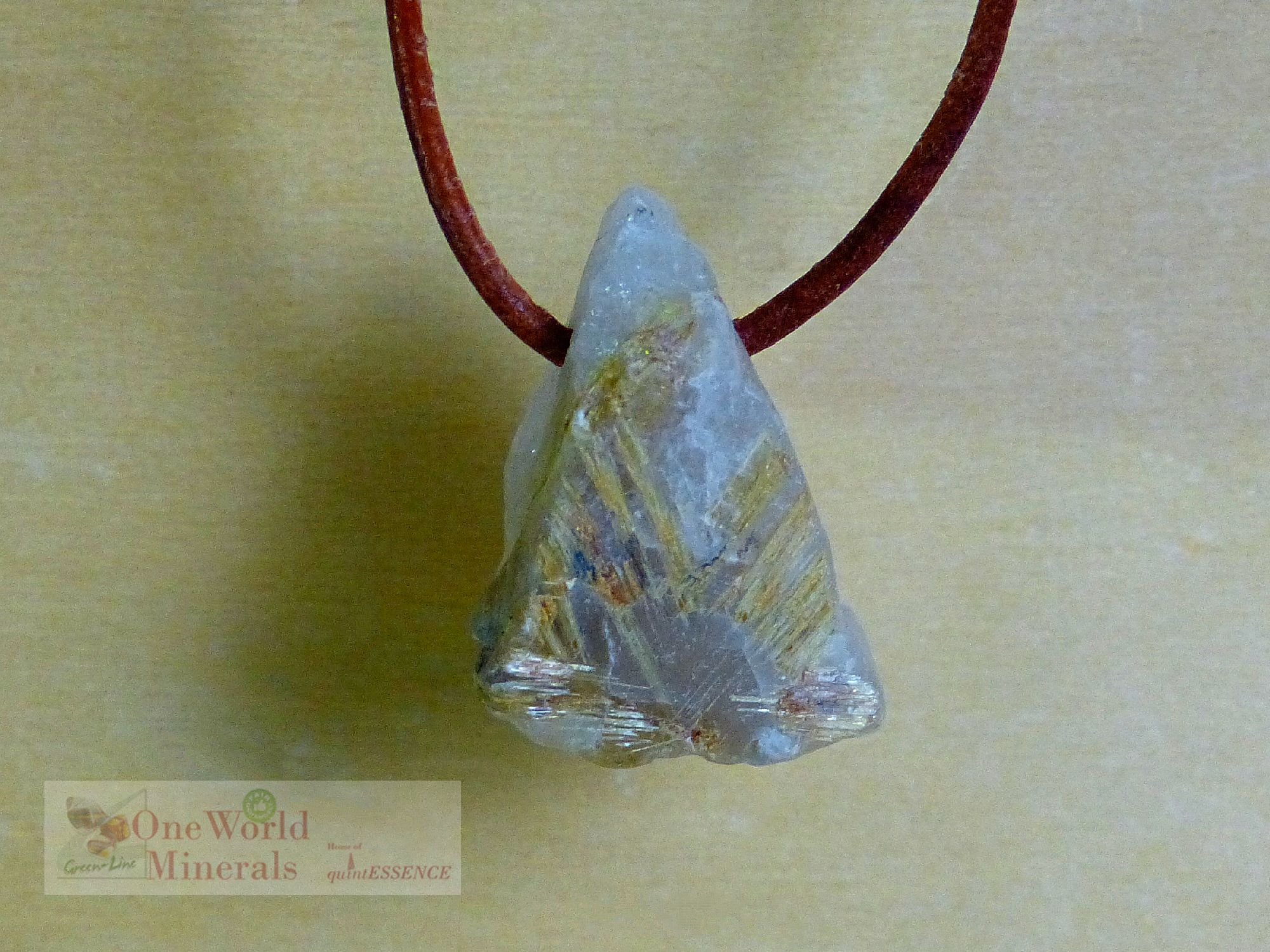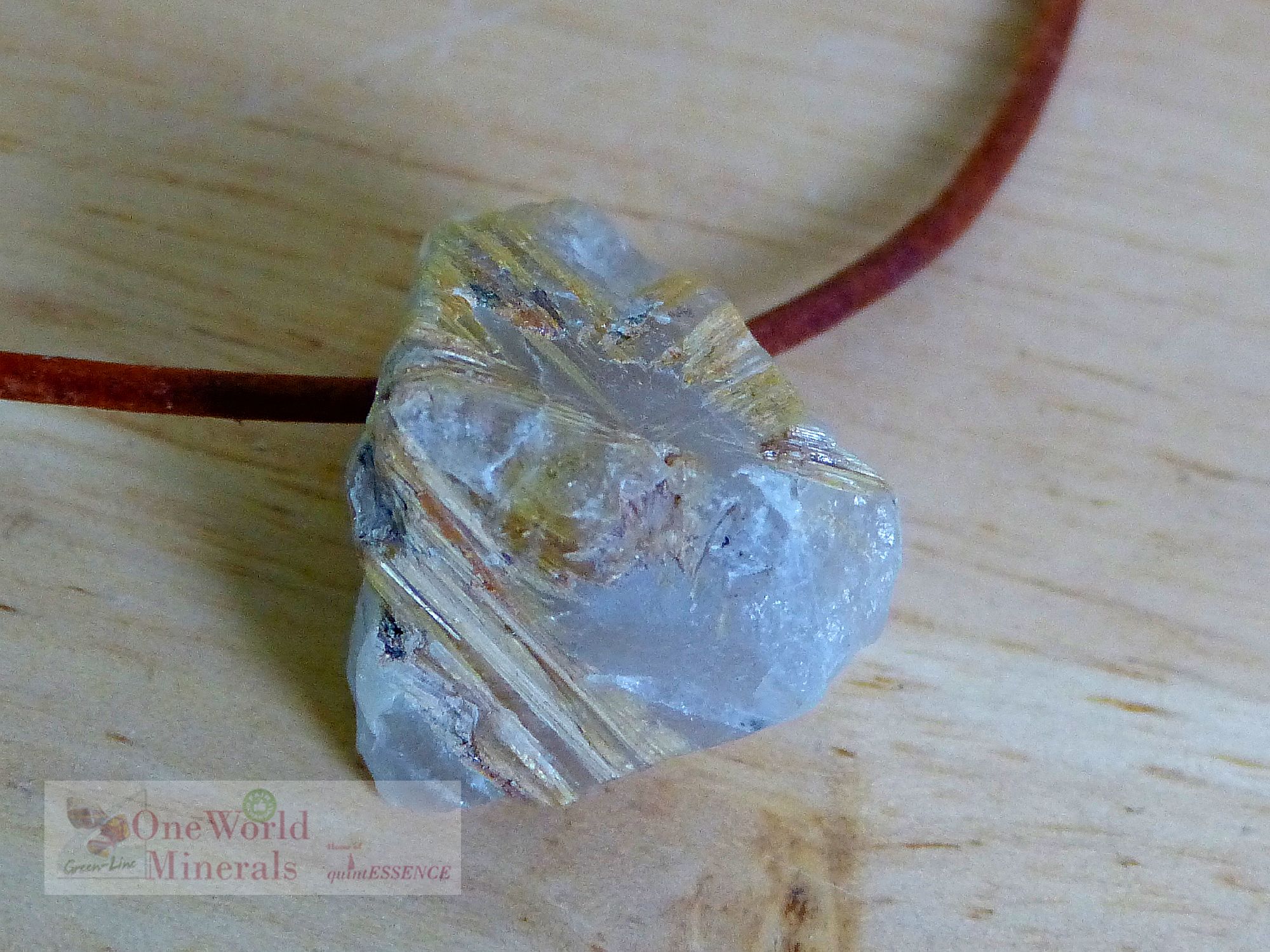 Schönes kleines Rutilquarz-Rohstück aus Brasilien mit natürlichem Bruch, zum Schmuck-Anhänger verarbeitet.