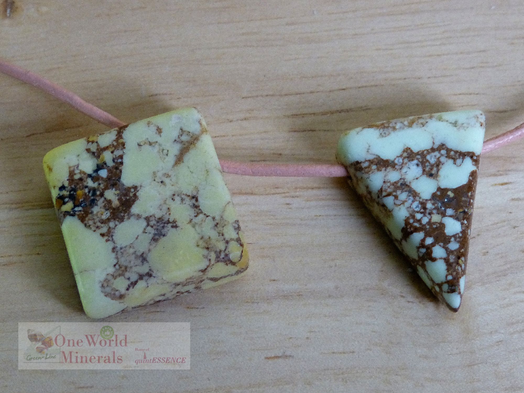 Pack mit 2 Zitronen-Magnesit (Australien) Schmuckanhängern, Made in Germany, Größe ca. 3 cm.