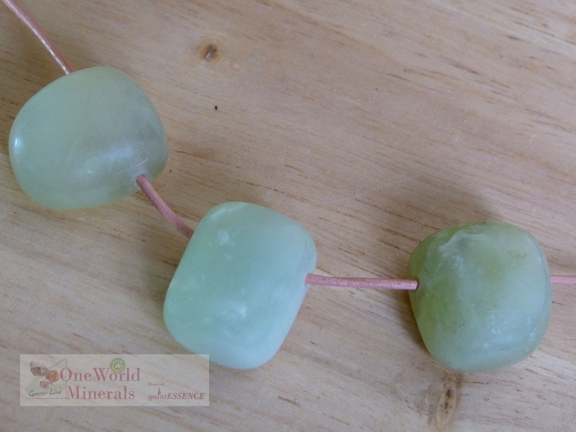 3 gebohrte Serpentin Trommelsteine,