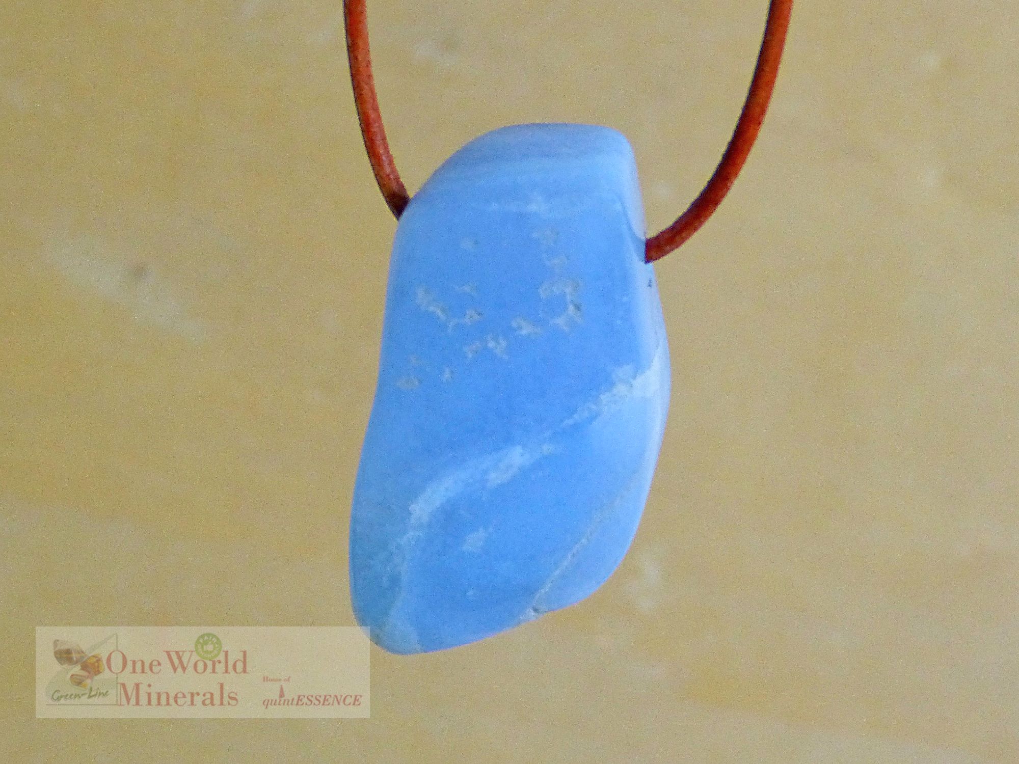 Chalcedon Anhänger, Herkunft Malawi, Trommelstein gebohrt.