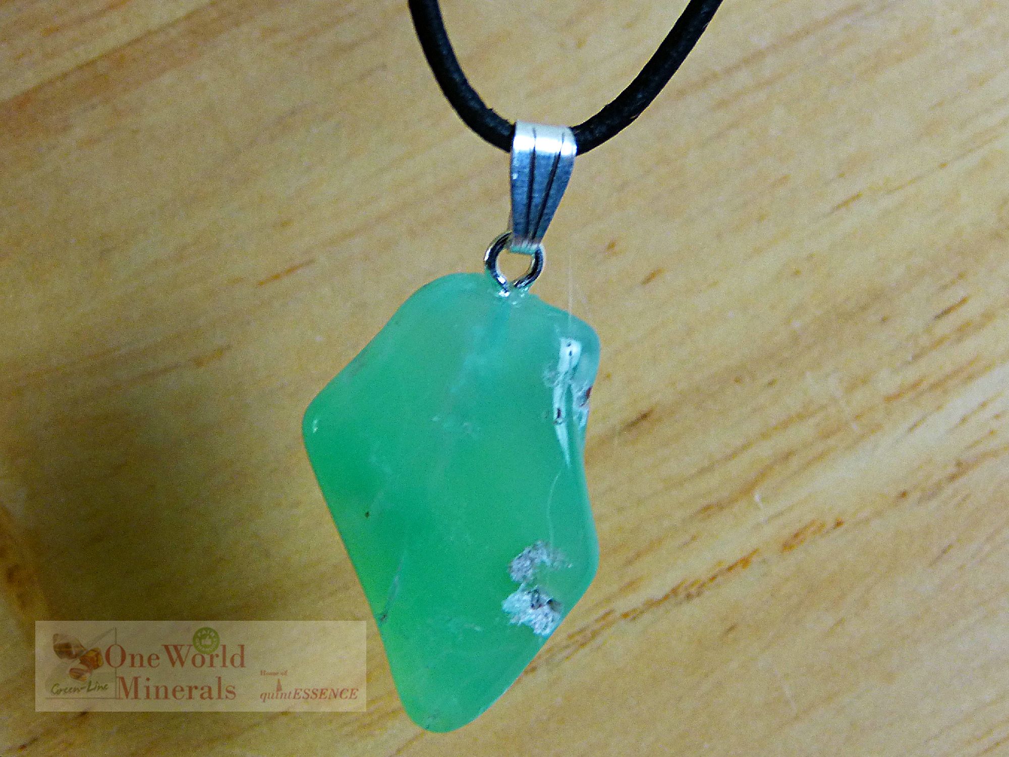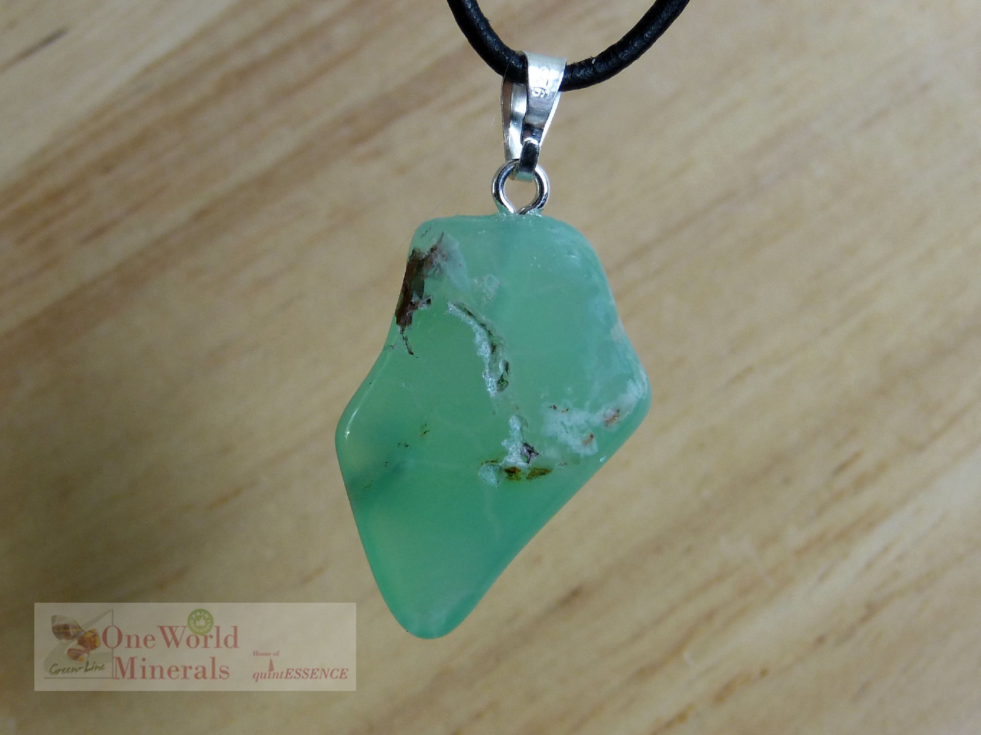 Aufgrund der natürlichen Struktur des Chrysopras ist die Oberfläche etwas unregelmäßig!