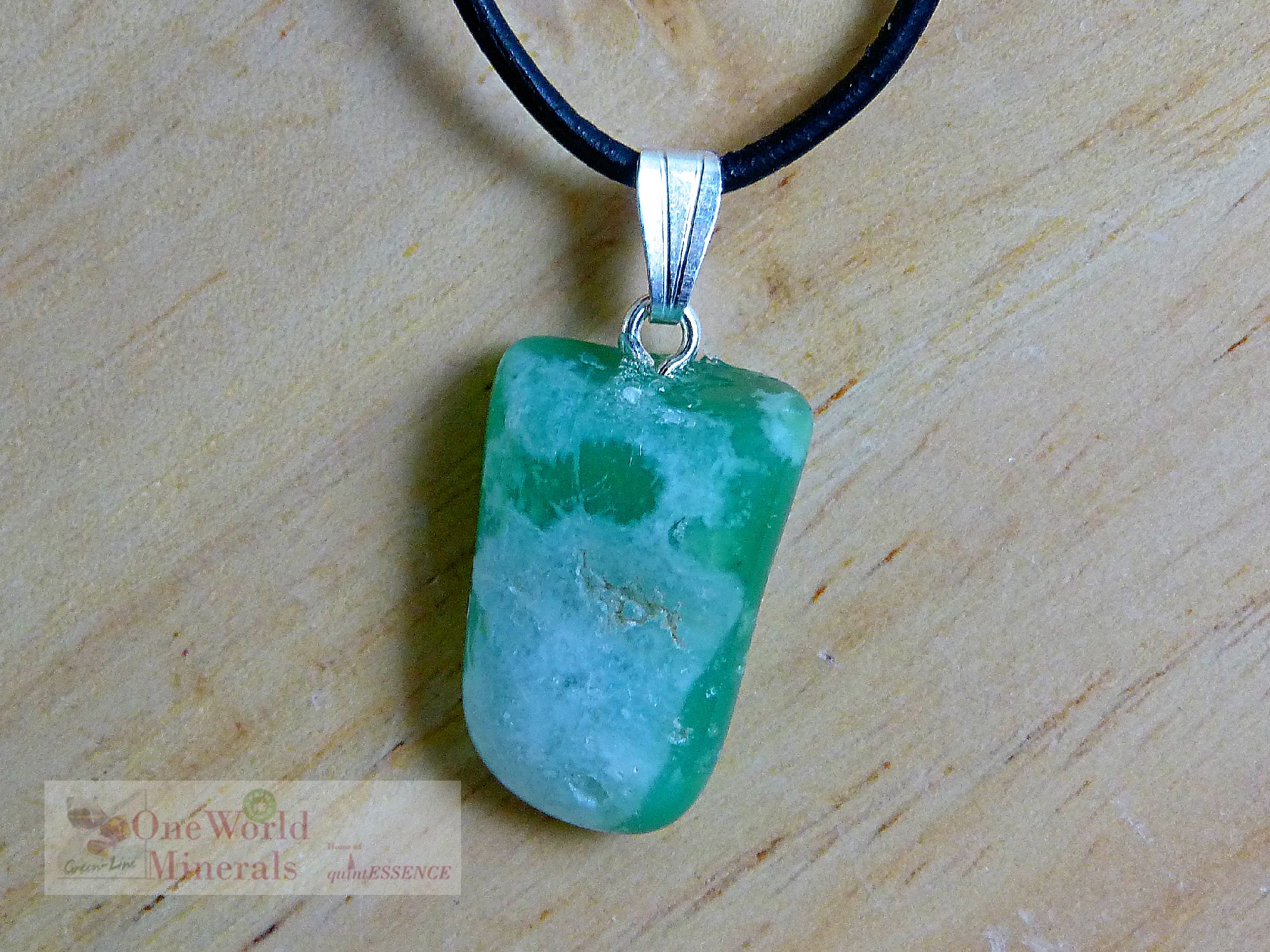 Aufgrund der natürlichen Struktur des Chrysopras ist die Oberfläche etwas unregelmäßig!