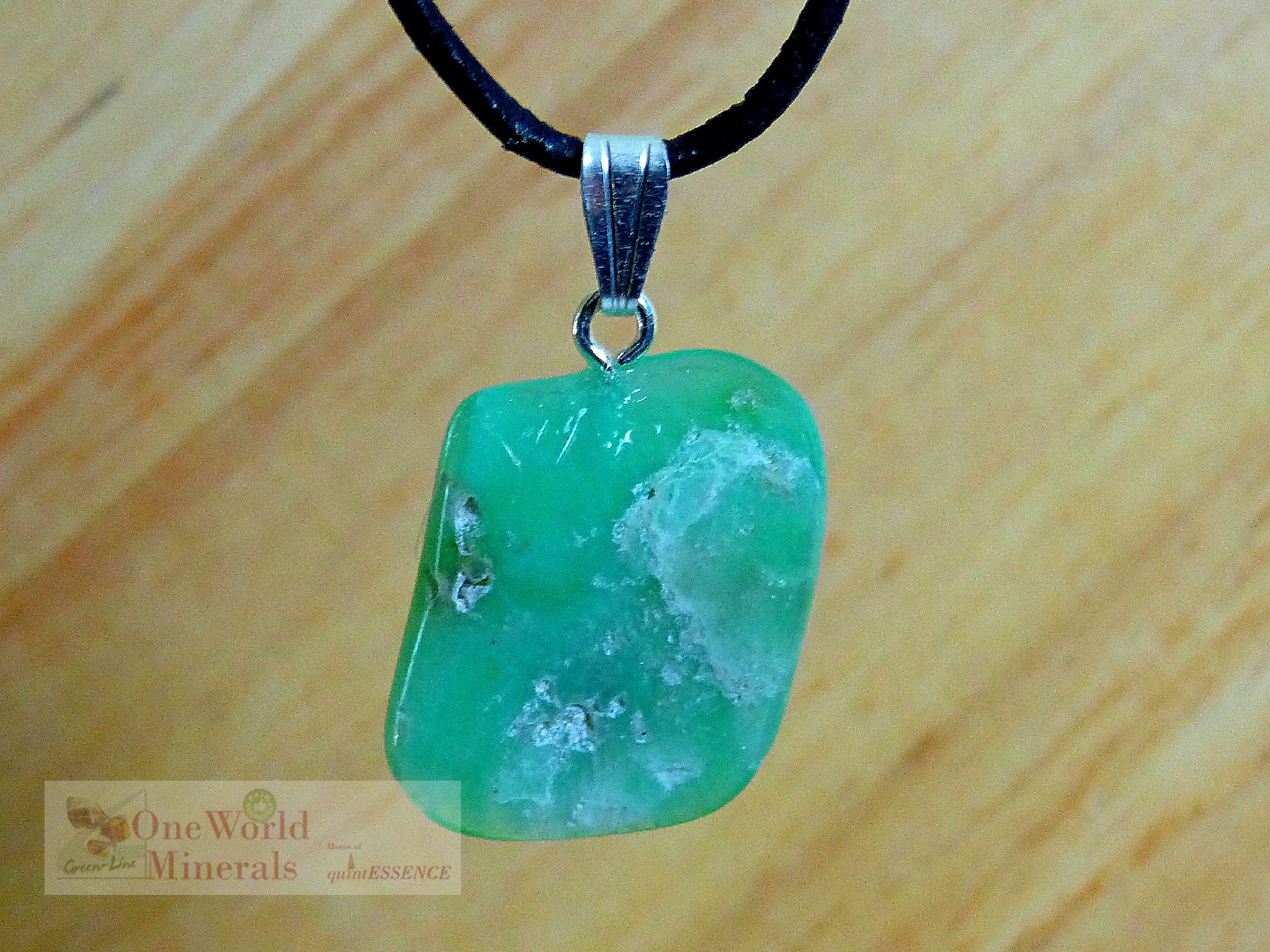 Aufgrund der natürlichen Struktur des Chrysopras ist die Oberfläche etwas unregelmäßig!