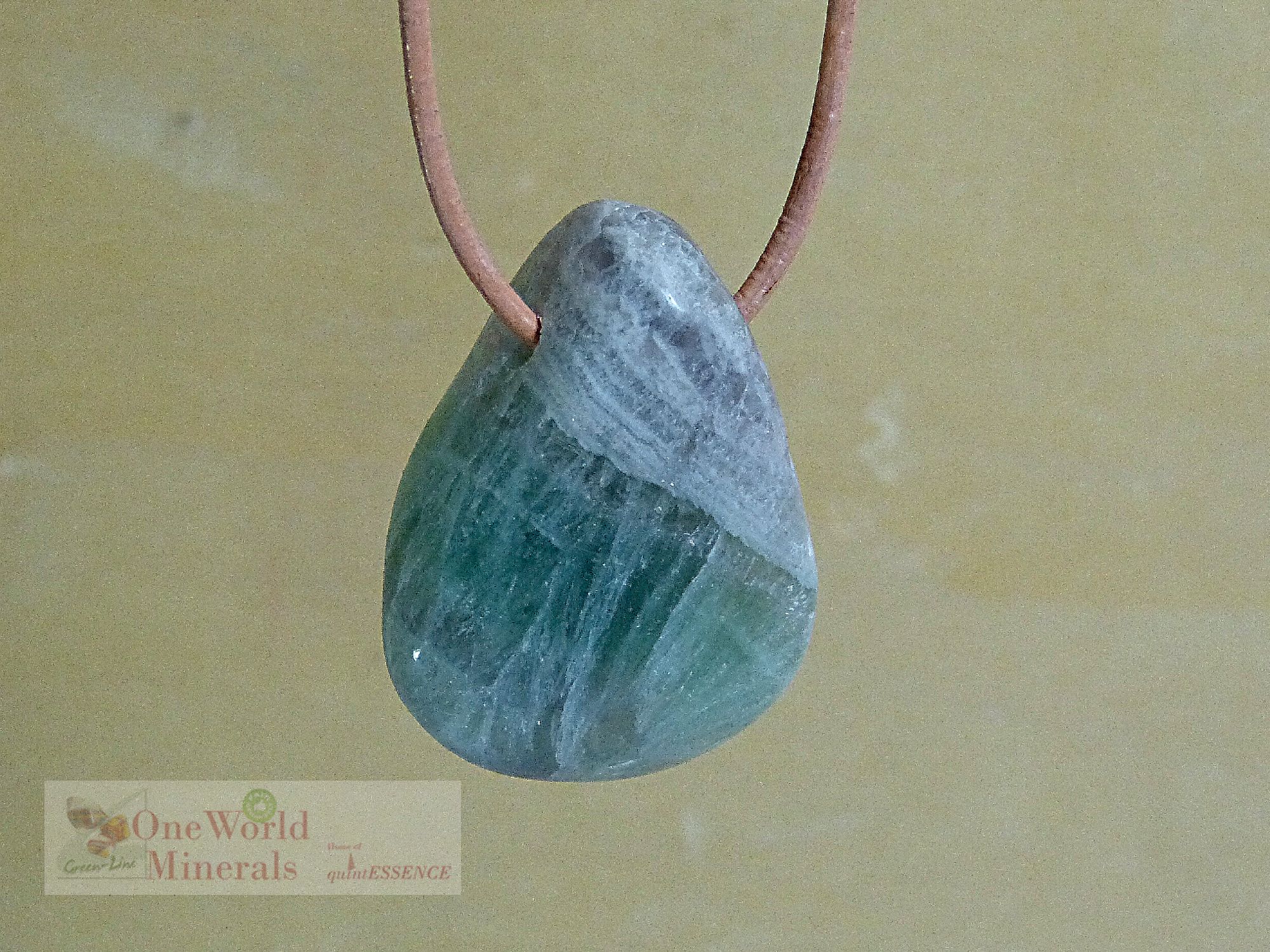 Fluorit Anhänger gebohrt, aus eigener Produktion, Größe ca.3 x 2 cm.