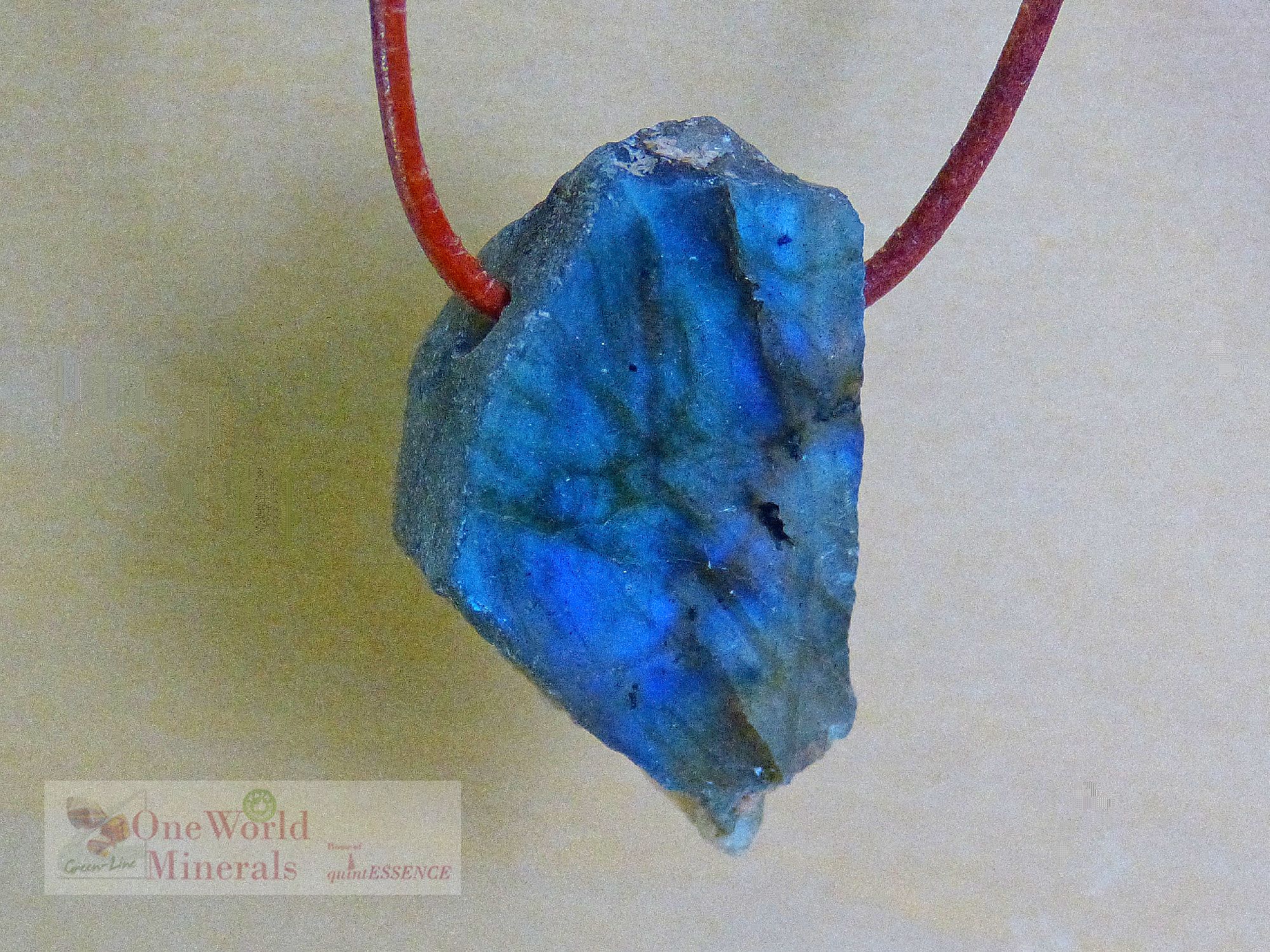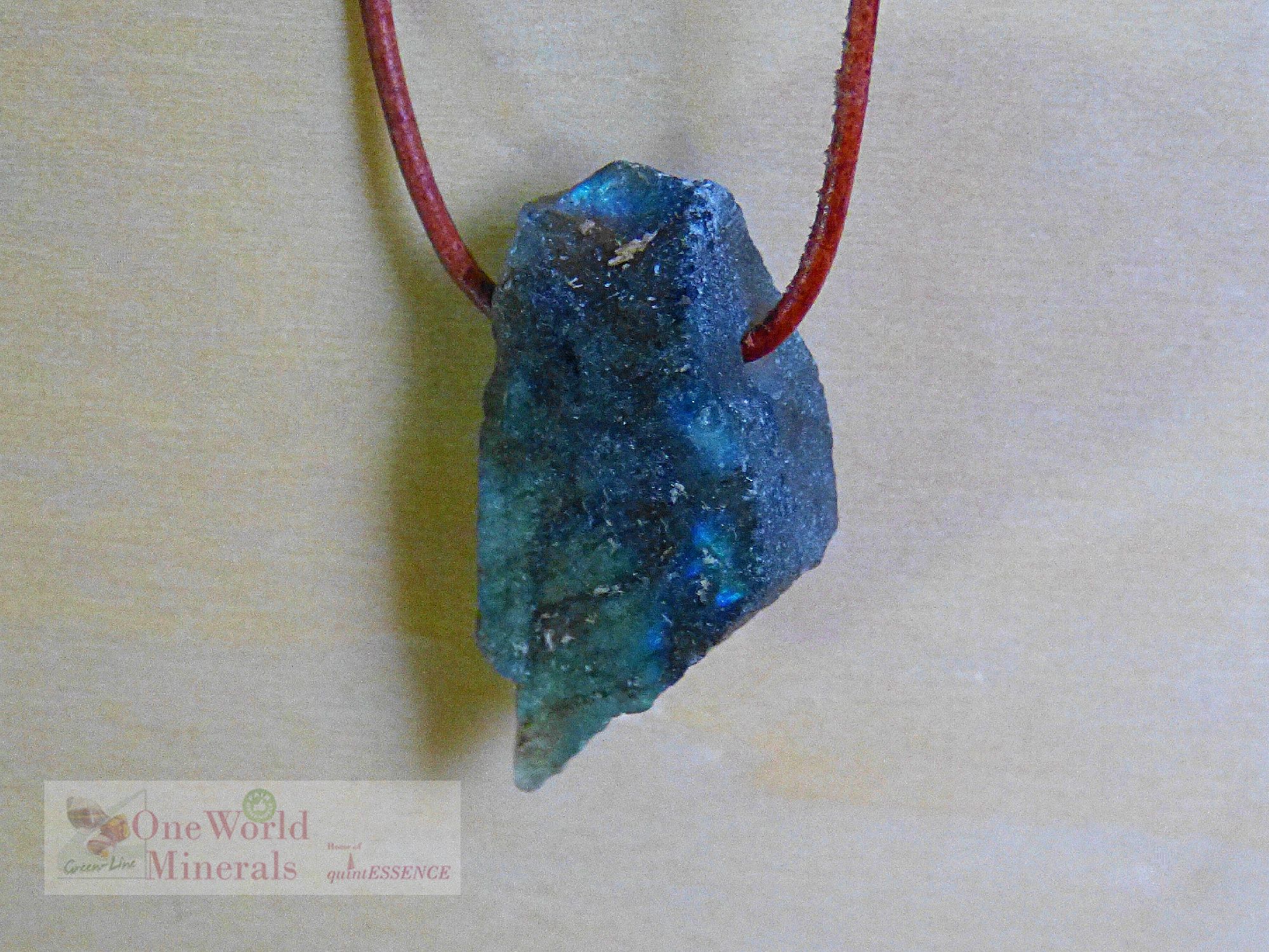Die Vorderseite ist handpoliert, die Rückseite roh belassen. Der Anhänger kann beidseitig getragen werden.
