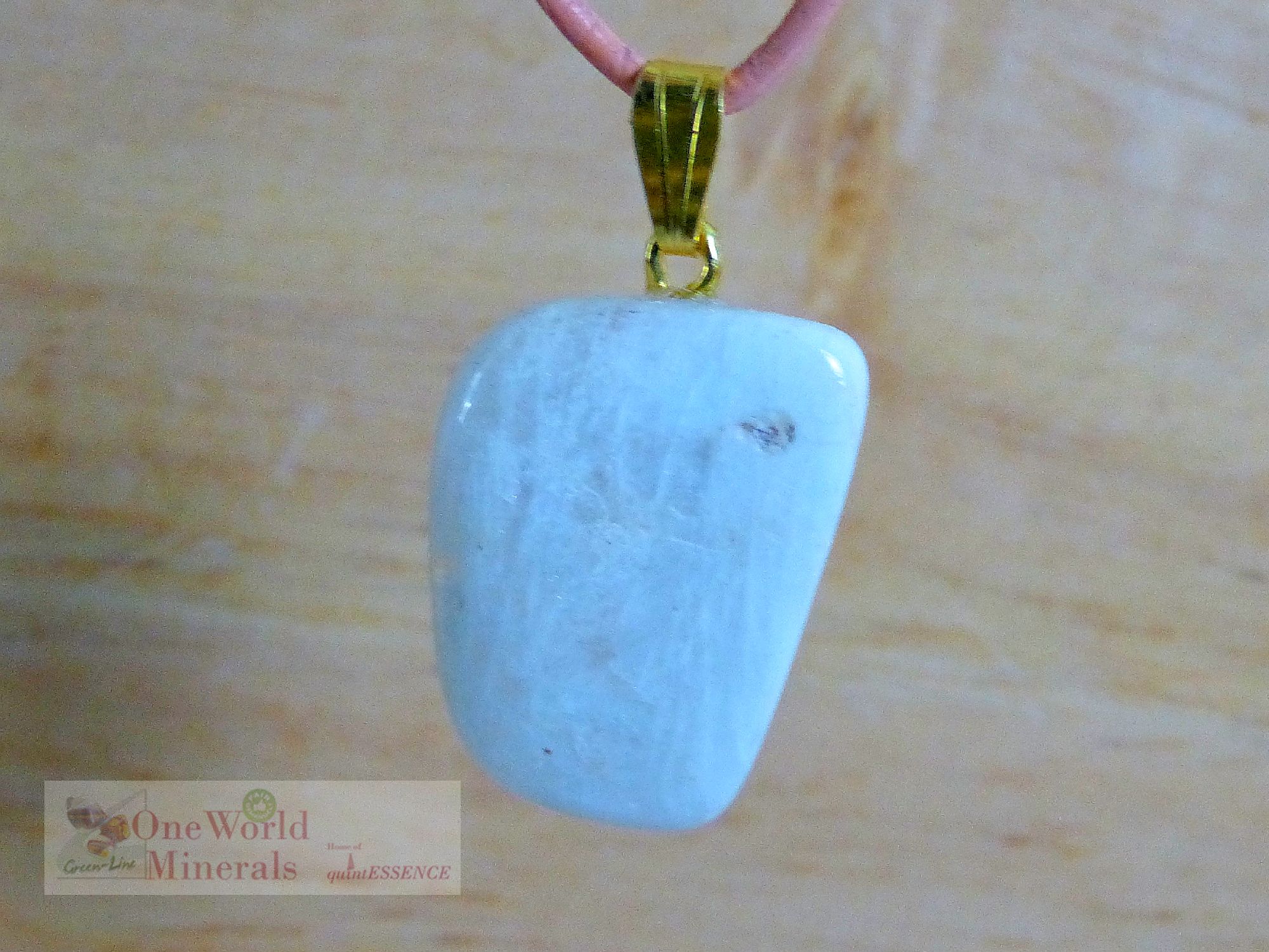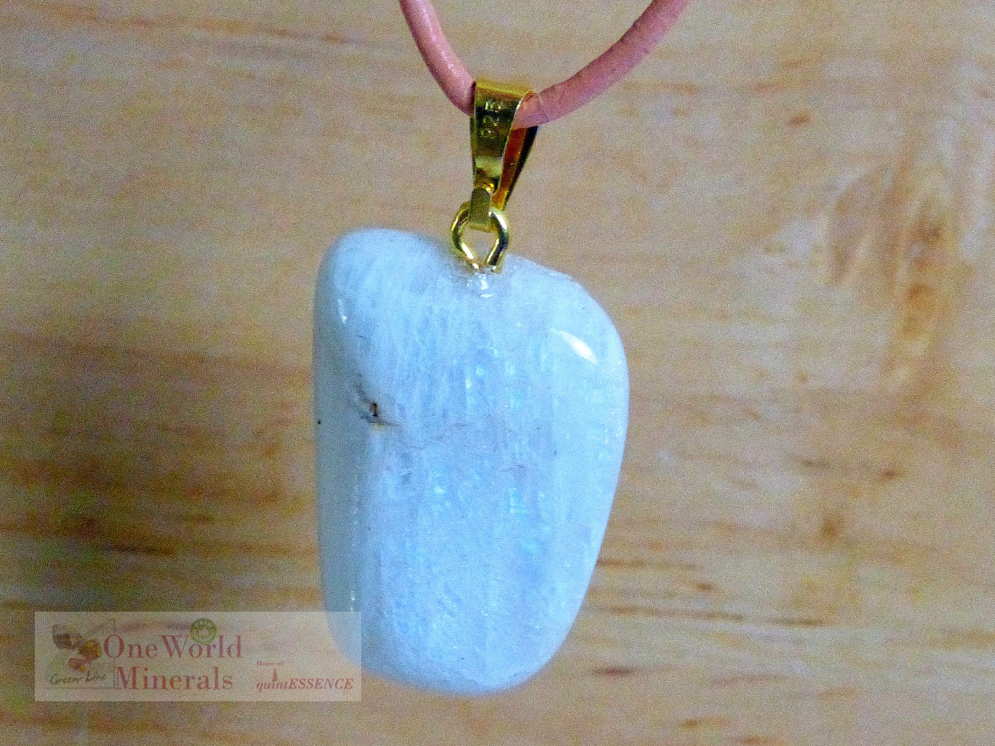 Kleiner Mondstein Anhänger mit leichtem Blauschimmer auf der Vorderseite, Herkunft Tansania, gestiftet