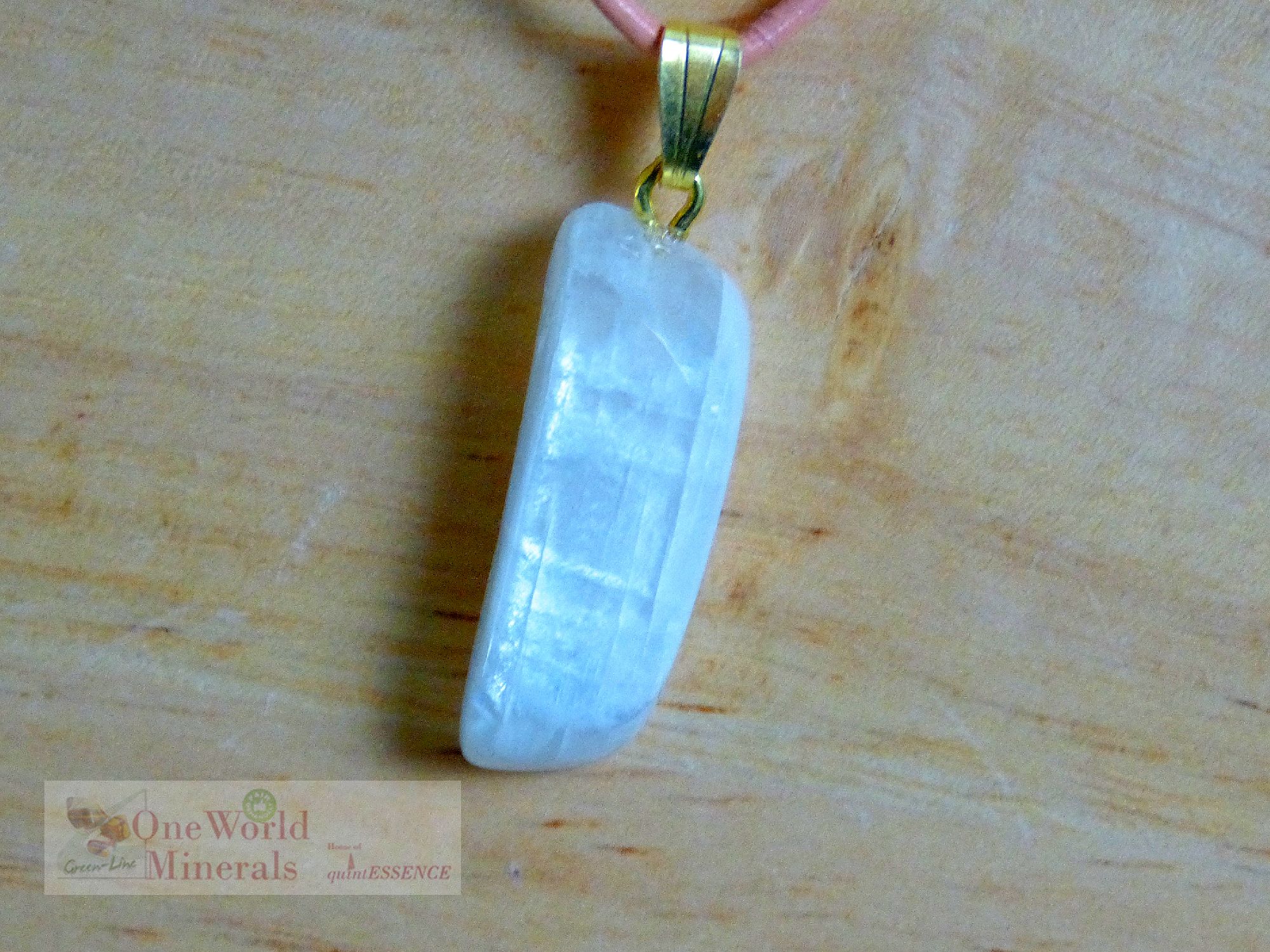 Kleiner Mondstein Anhänger mit Blauschimmer auf der Vorderseite, Herkunft Tansania, gestiftet