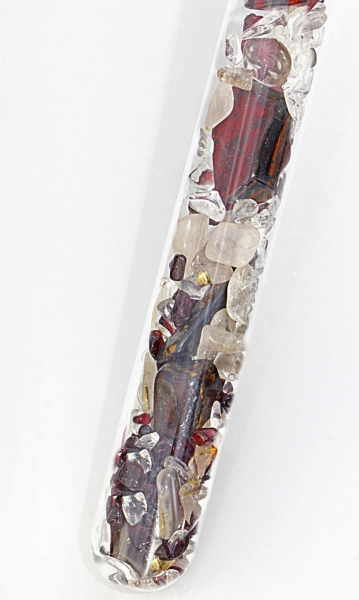 Mit unseren Edelstein-Stäben haben Sie jetzt eine einfache, praktische, hygienische, schnelle und günstige Möglichkeit Ihr eigenes Edelsteinwasser herzustellen. Der BASIC-Glasstab, ca. 24cm lang und 24mm Durchmesser, ist gefüllt mit feinen Edelsteinen und Edelsteingranulat, bevorzugt aus fairem Handel und Made in Germany. Er ist mit Naturkork verschlossen und in einer praktischen Recycling-Papprolle verpackt.
