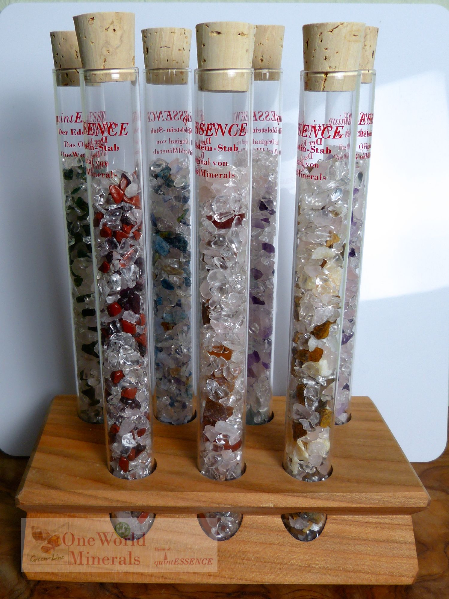 Die quintESSENCE Chakra - Stäbe sind gefüllt mit feinen Edelsteinen/Edelsteingranulat.