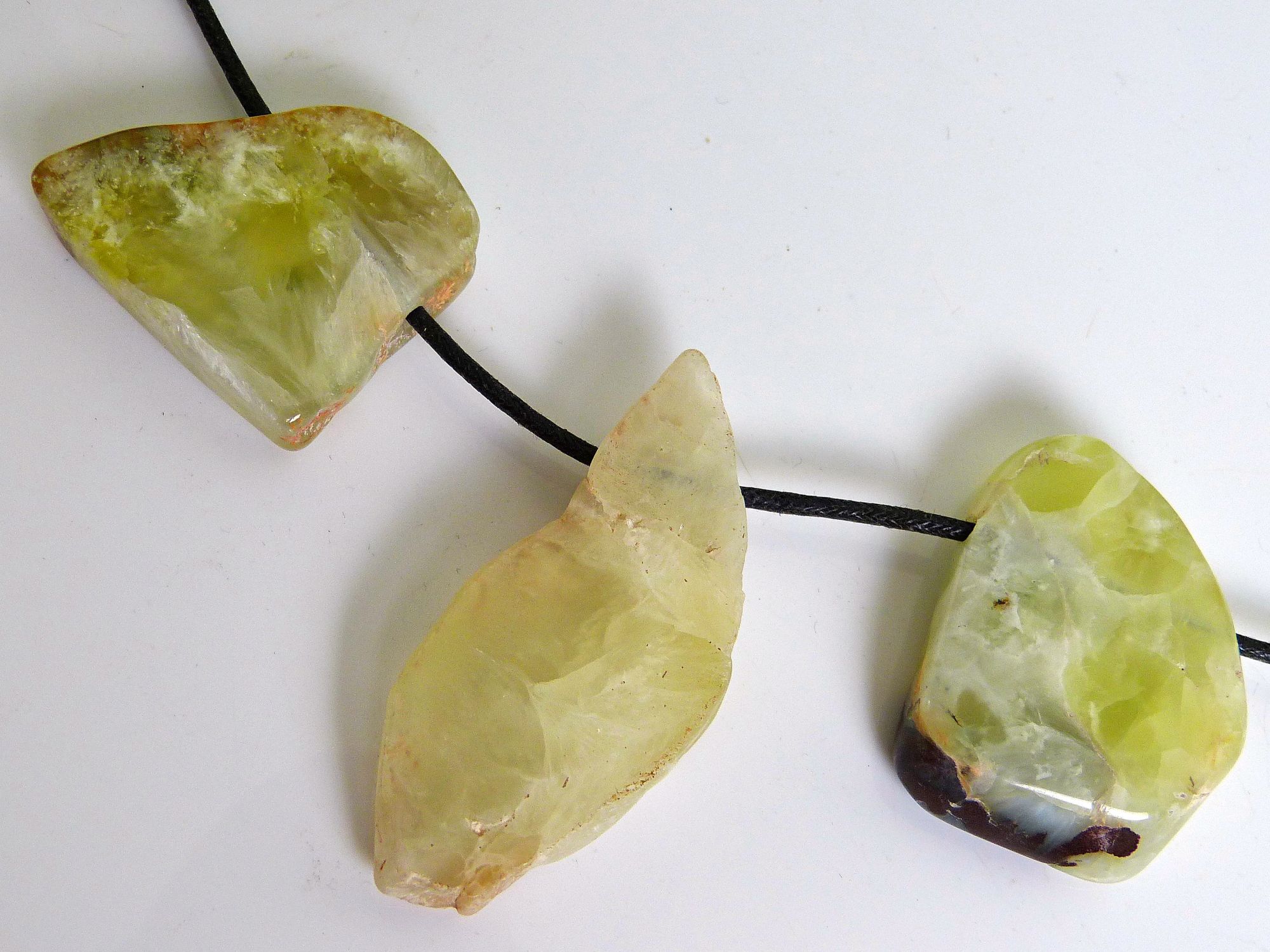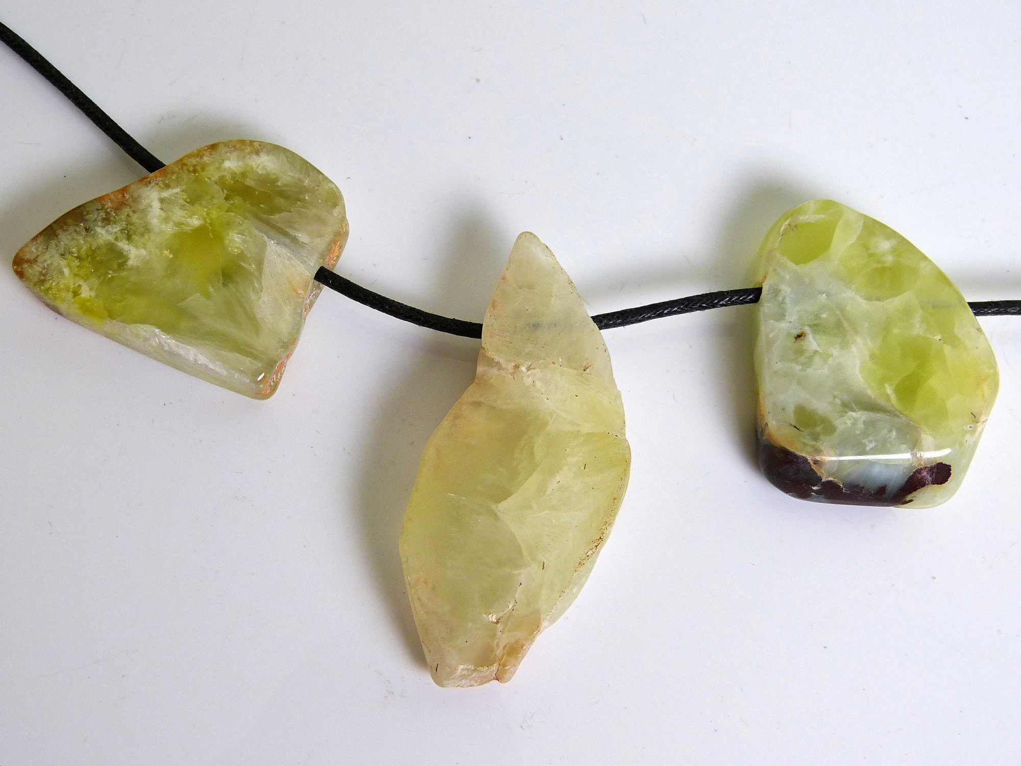 Set mit 3 Prehnit (Australien) Schmuckanhängern, Made in Germany. Größe ca. 4 - 6 cm.