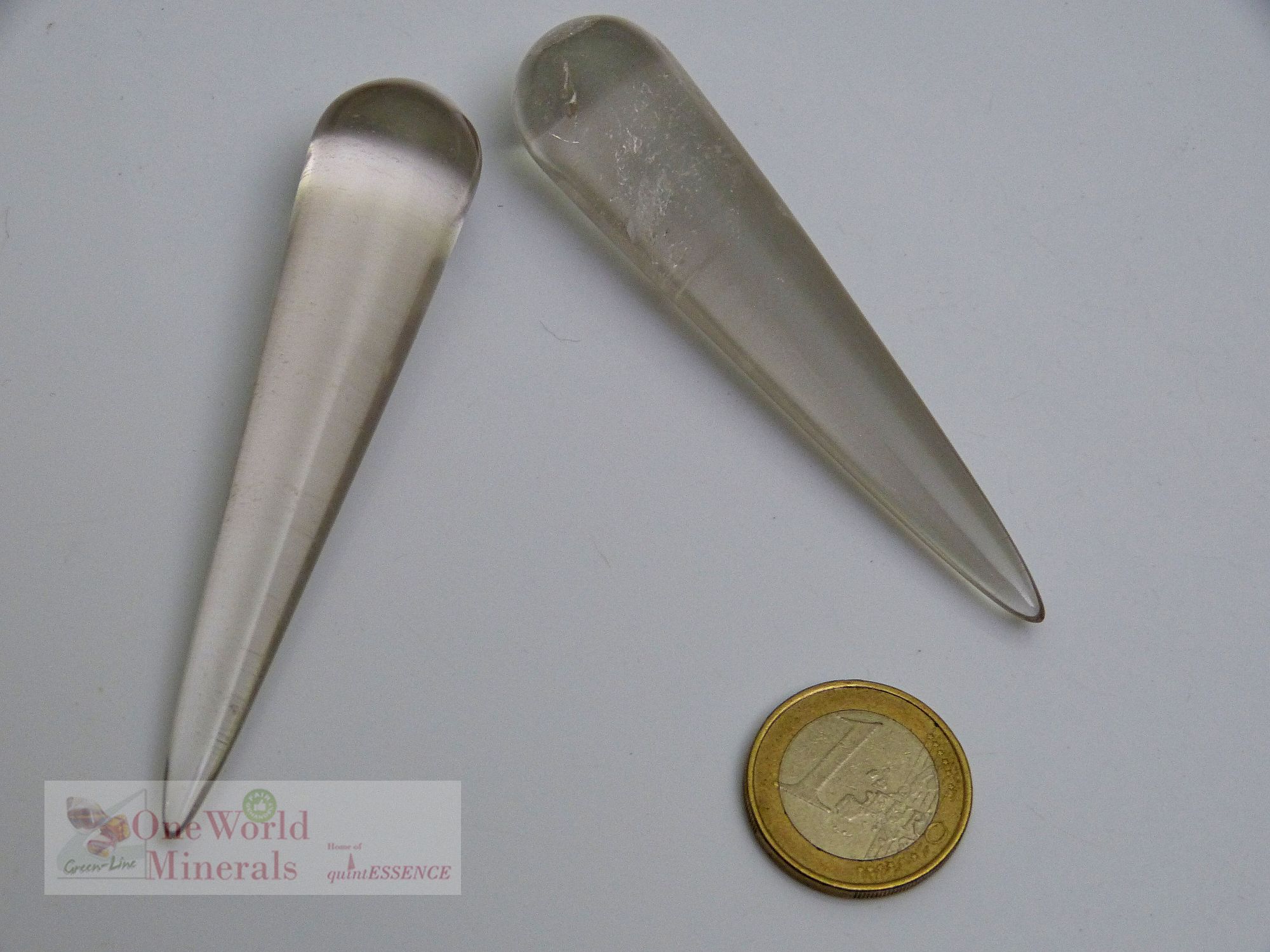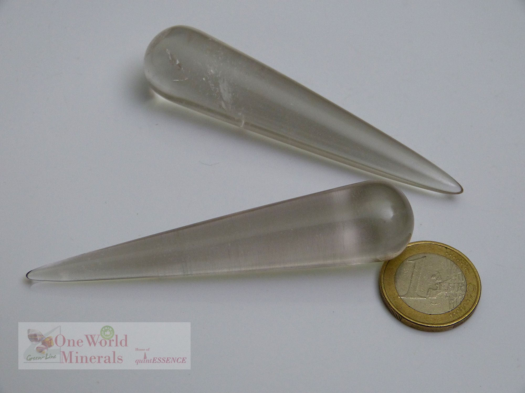 Die beiden Massagegriffel aus schweizer Rauchquarz sind in Deutschland per Hand geschliffen.
