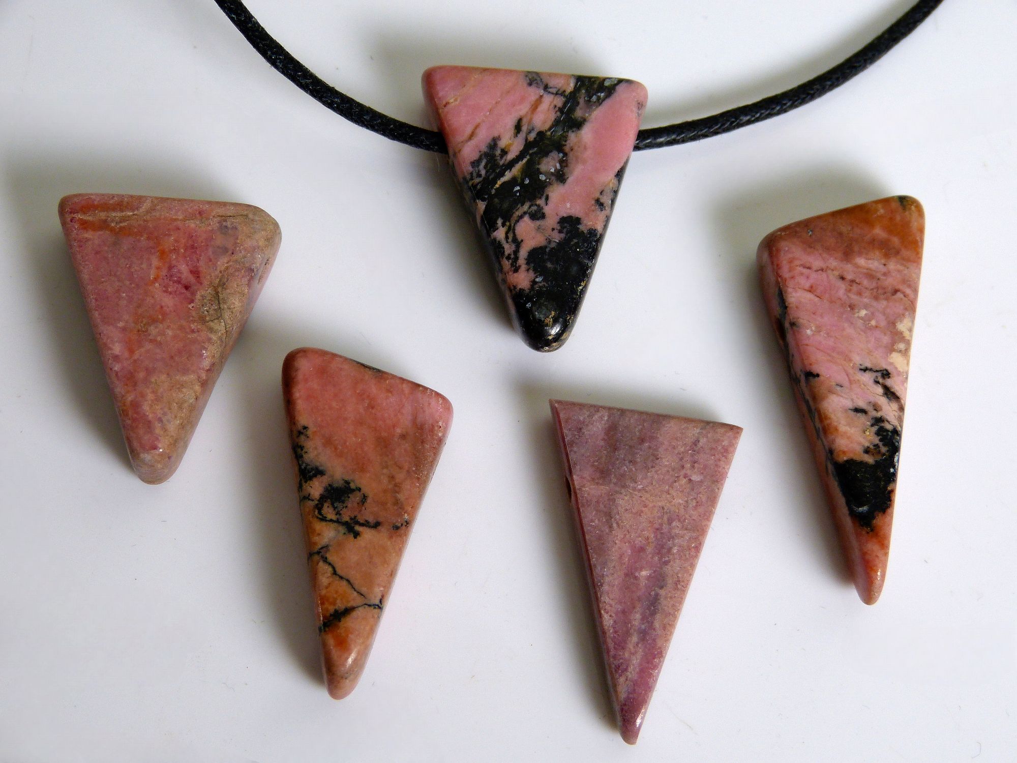 Set mit 5 Rhodonit (Australien) Schmuckanhängern, Made in Germany. Größe ca. 2 - 4 cm.