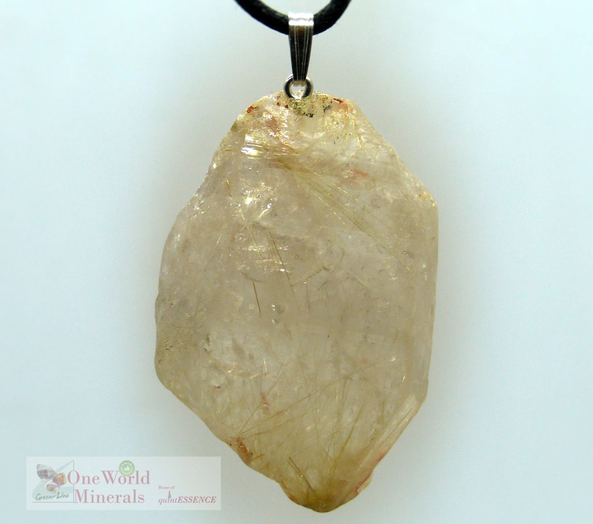 Schönes ausgesuchtes Rutilquarz-Rohstück aus Brasilien mit natürlichem Bruch, ehemals Teil einer Bergkristallspitze (noch sichtbar).