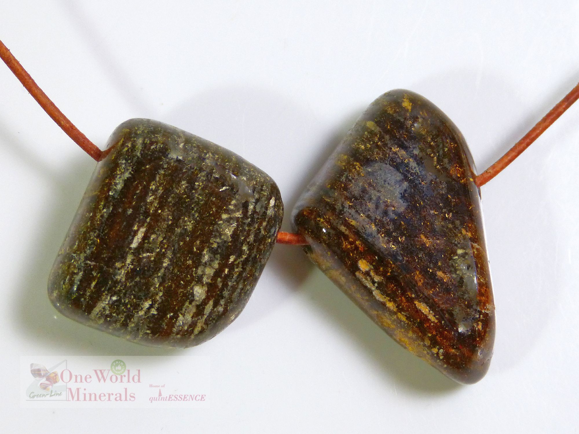Golden Amphibolit, 2 flache Anhänger - Einzelstücke