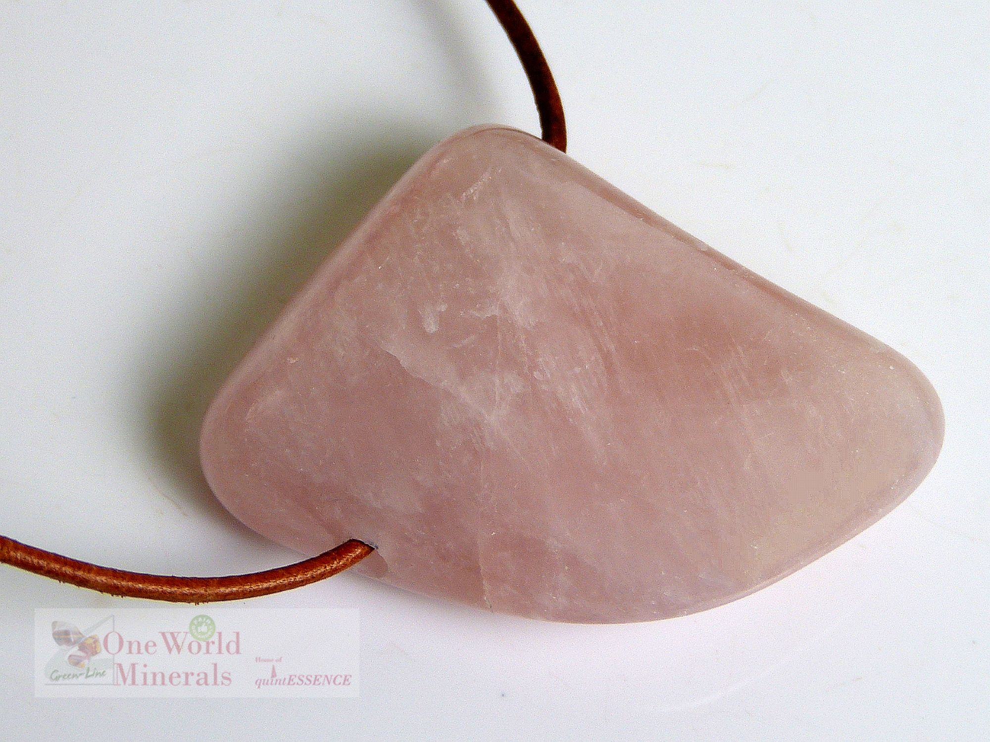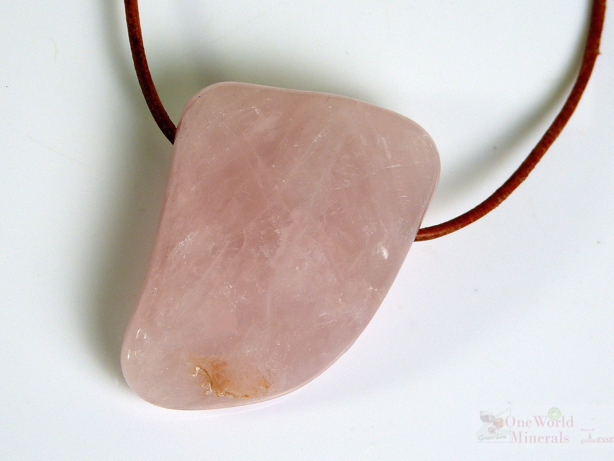 Rosenquarz Anhänger mit Leder- oder Baumwollband-Bohrung - Rosenquarz aus Madagascar