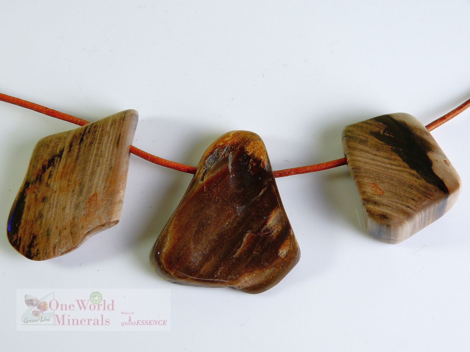 3 versteineres Holz Anhänger Unikate aus Madagaskar.