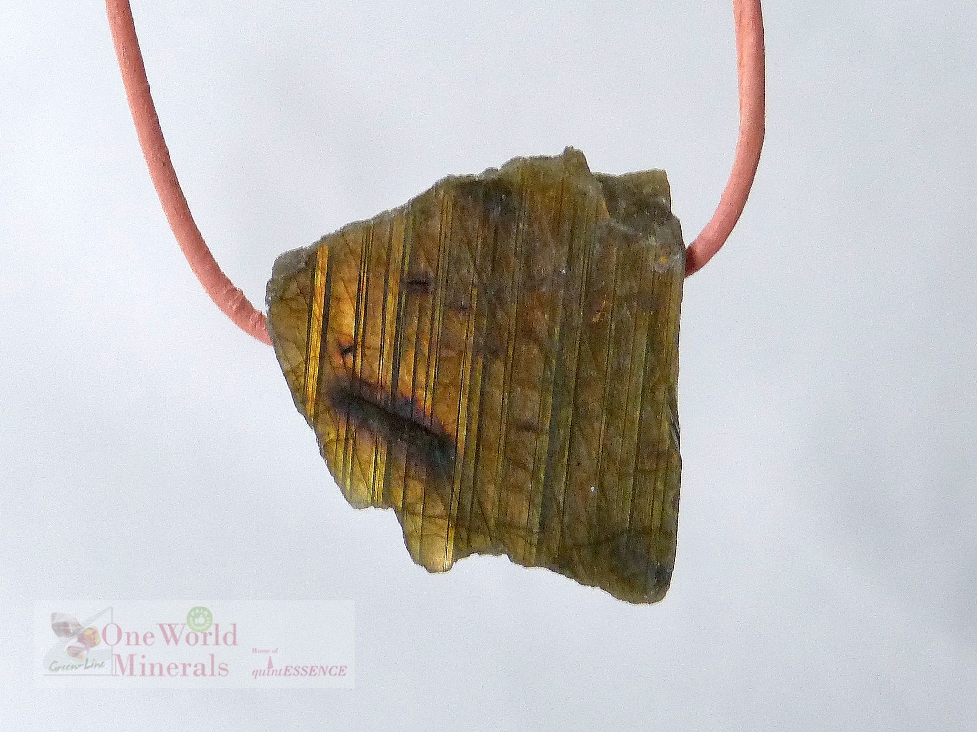 Die Vorderseite ist handpoliert, die Rückseite roh belassen. Der Anhänger kann beidseitig getragen werden.