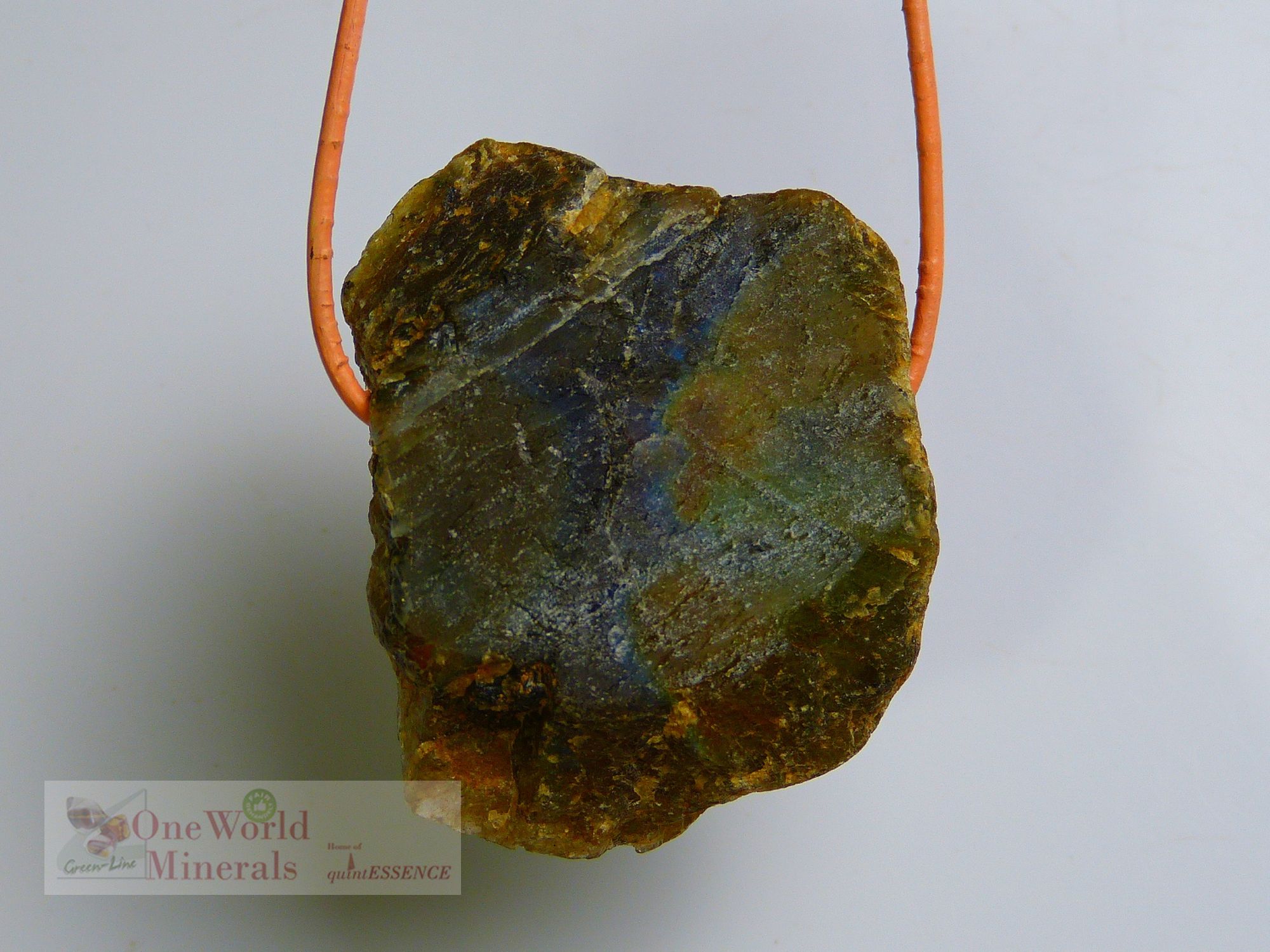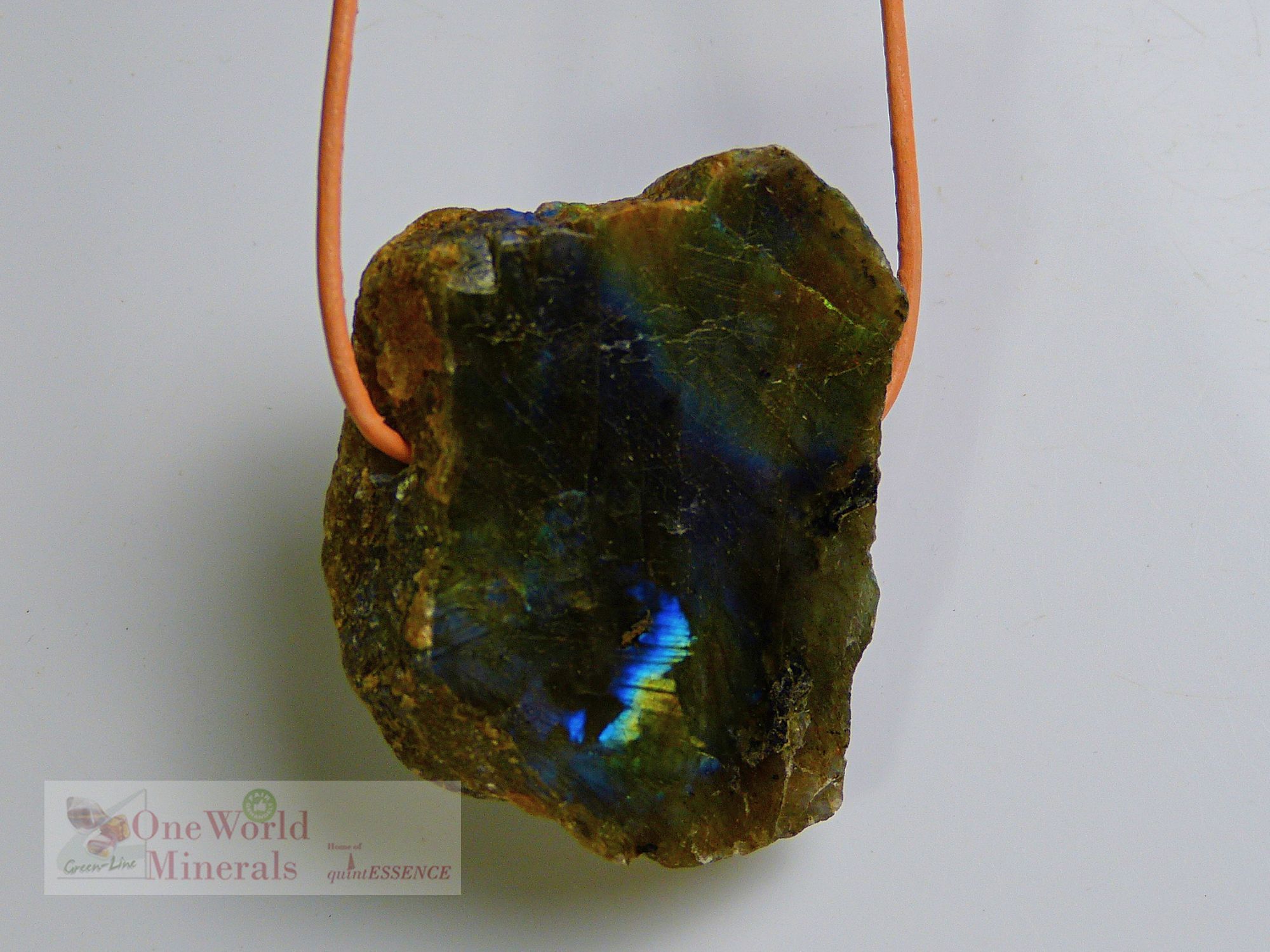 Die Vorderseite ist handpoliert, die Rückseite roh belassen. Der Anhänger kann beidseitig getragen werden, die Bilder zeigen die Vorder- und die Rückseite des Steines.
