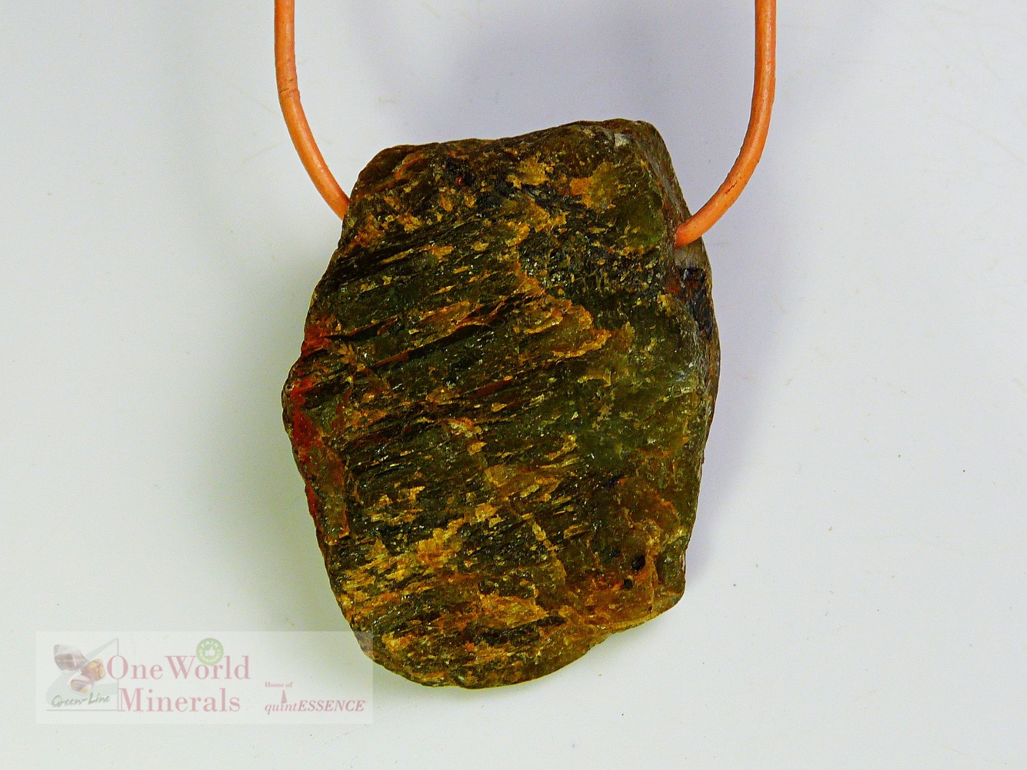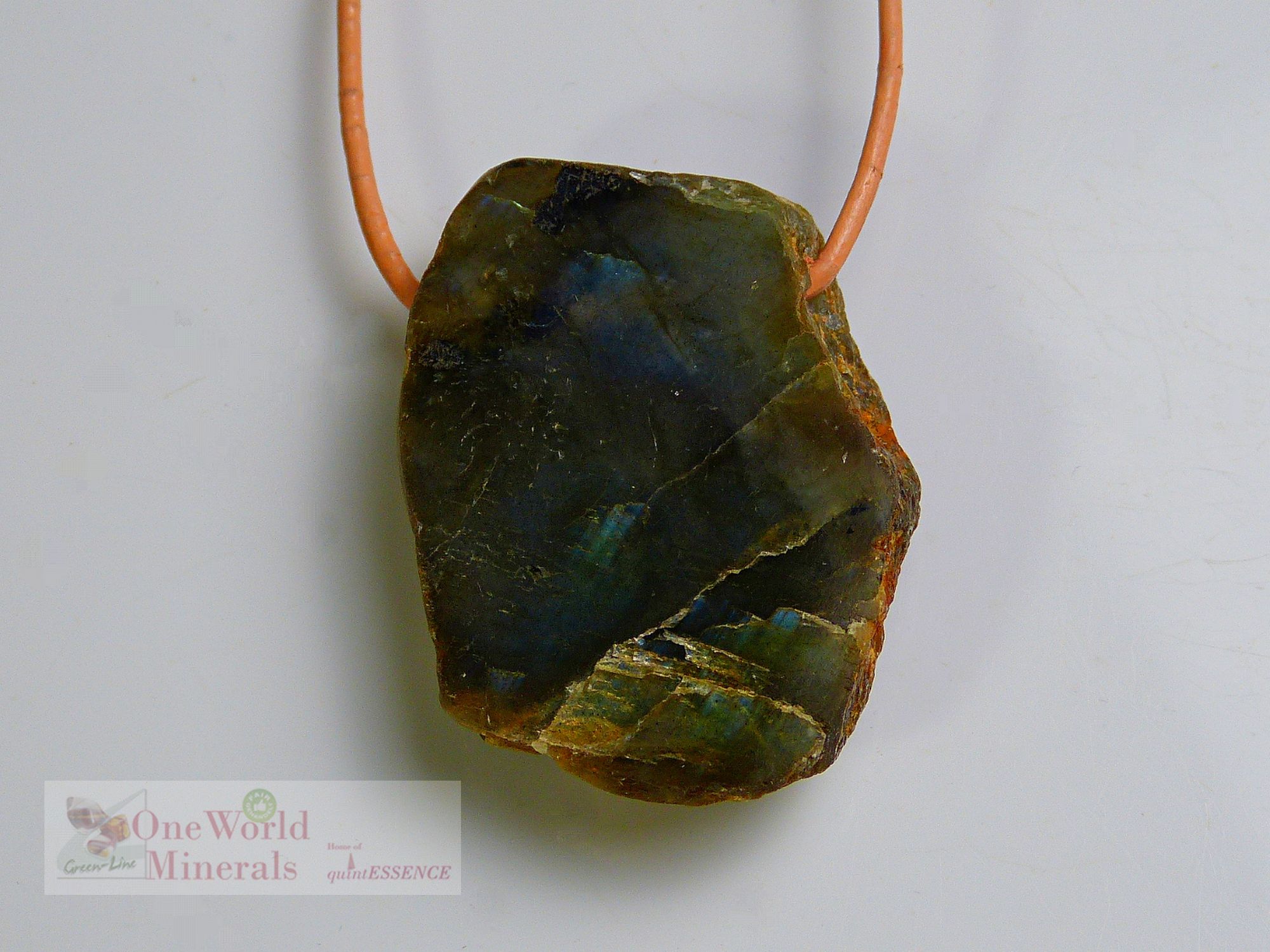 Die Vorderseite ist handpoliert, die Rückseite roh belassen. Der Anhänger kann beidseitig getragen werden, die Bilder zeigen die Vorder- und die Rückseite des Steines.