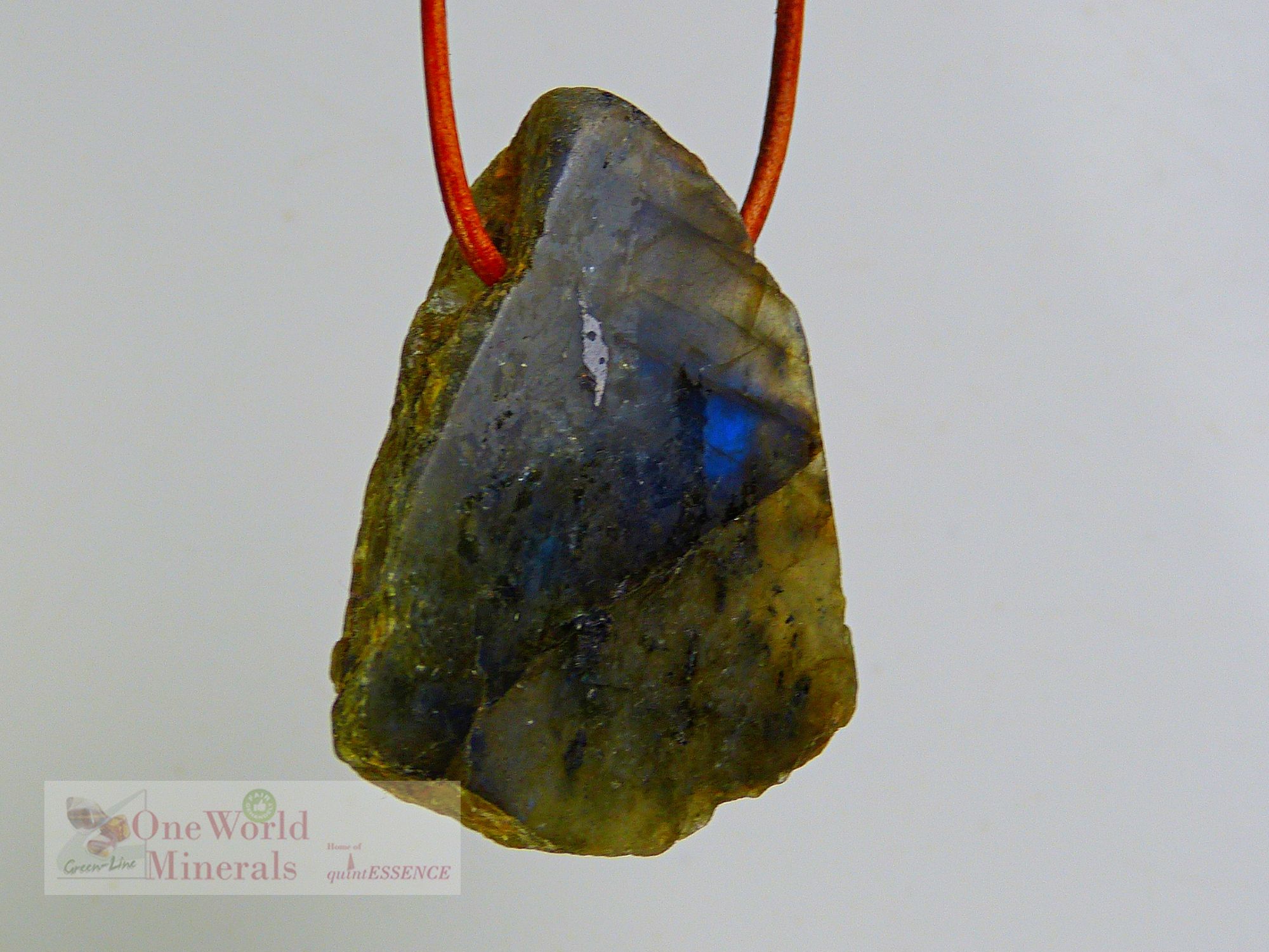 Preview: Labradorit Schmuckanhänger - handgeschliffen, die Rückseite ist roh belassen - ein Einzelstück