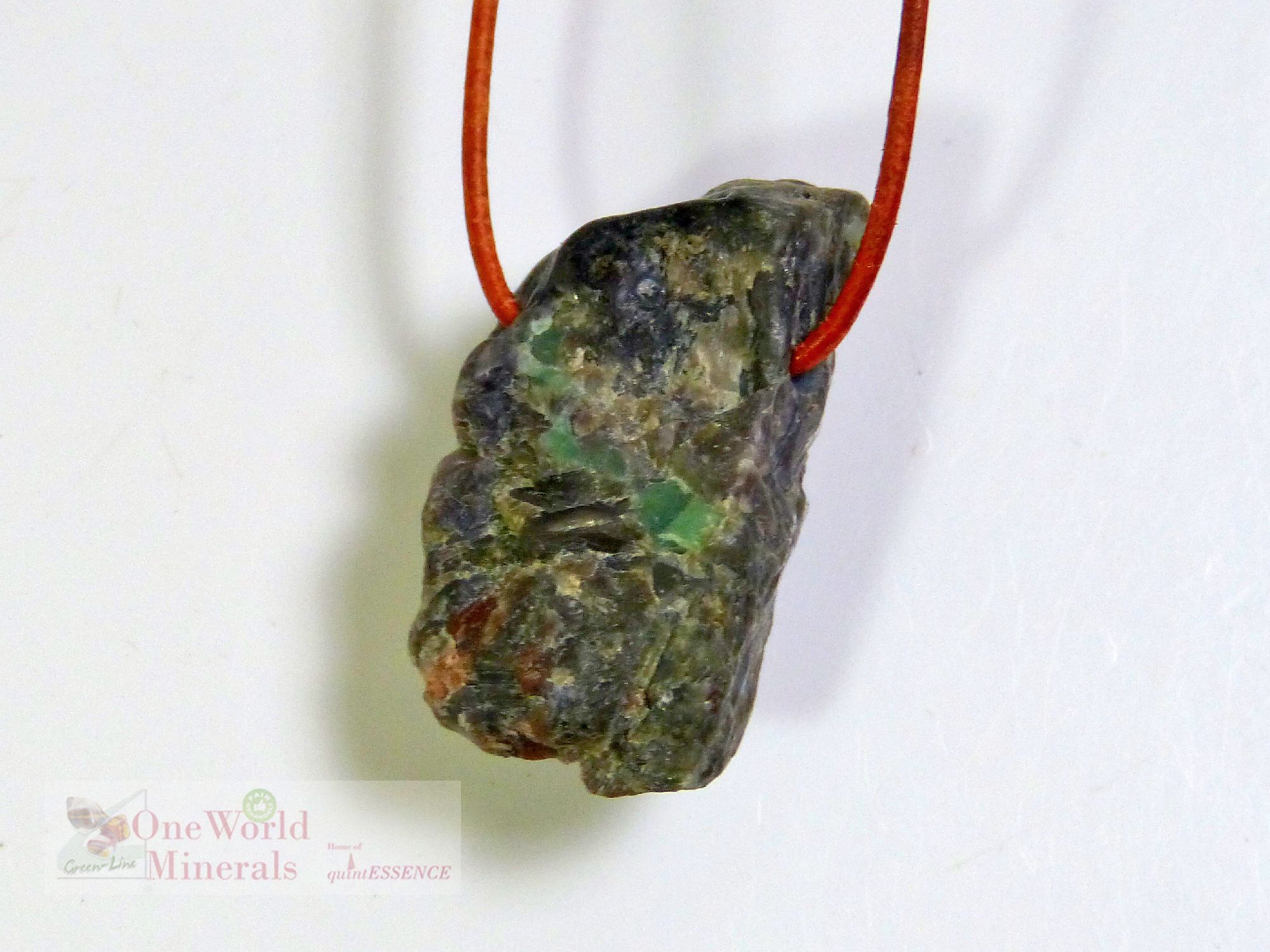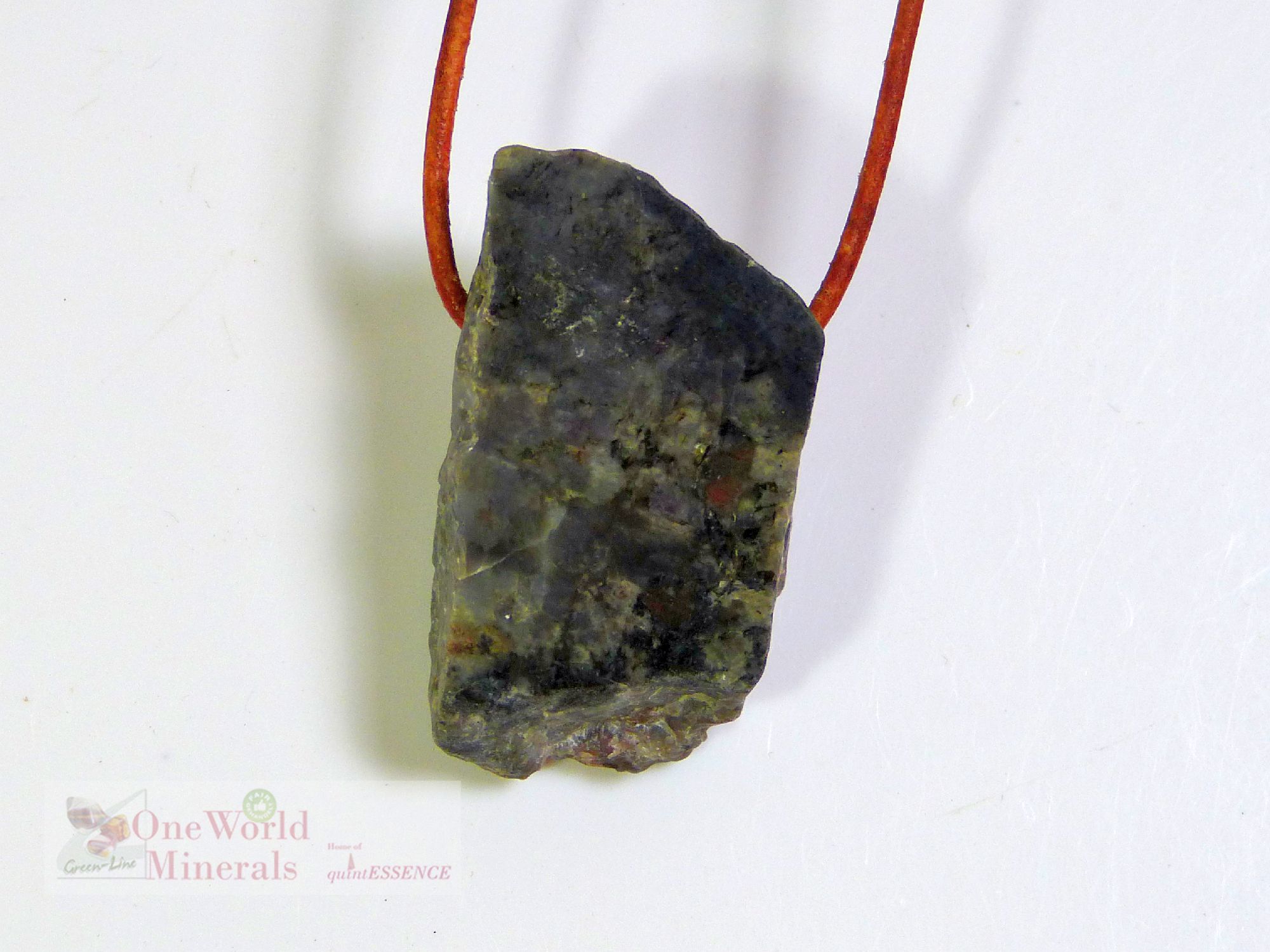 Die Vorderseite ist handpoliert, die Rückseite roh belassen. Der Anhänger kann beidseitig getragen werden, die Bilder zeigen die Vorder- und die Rückseite des Steines.